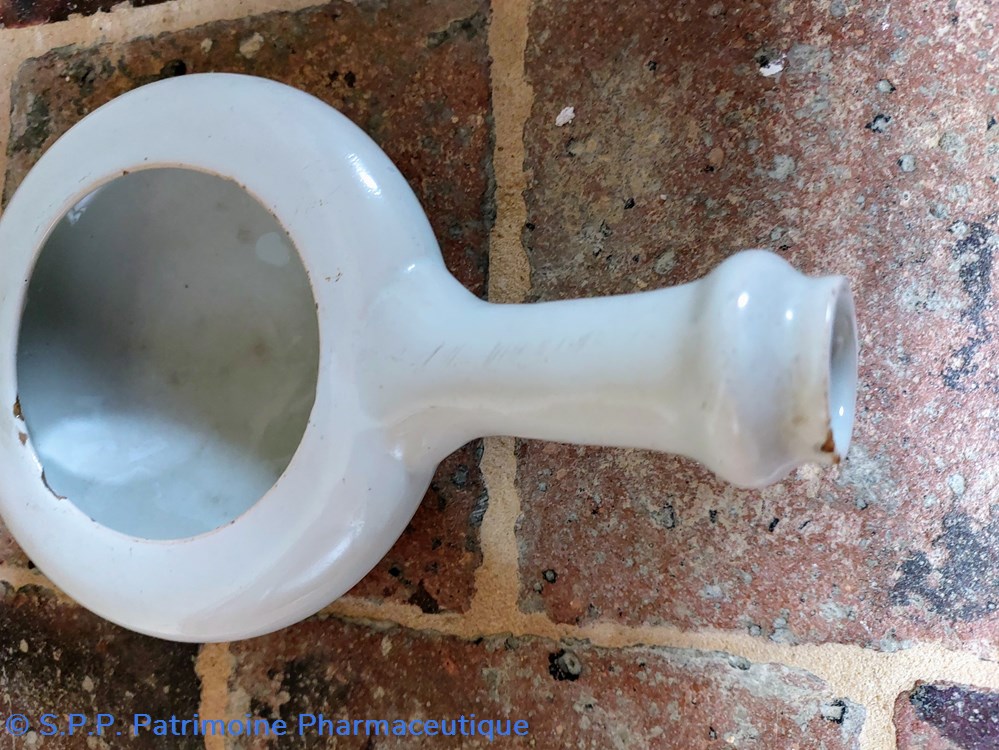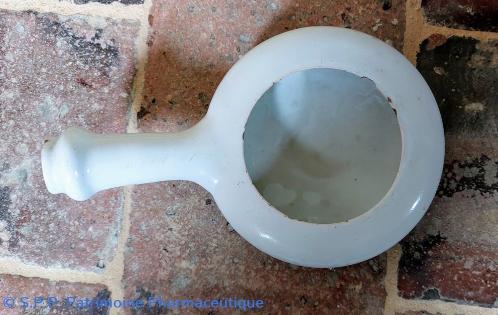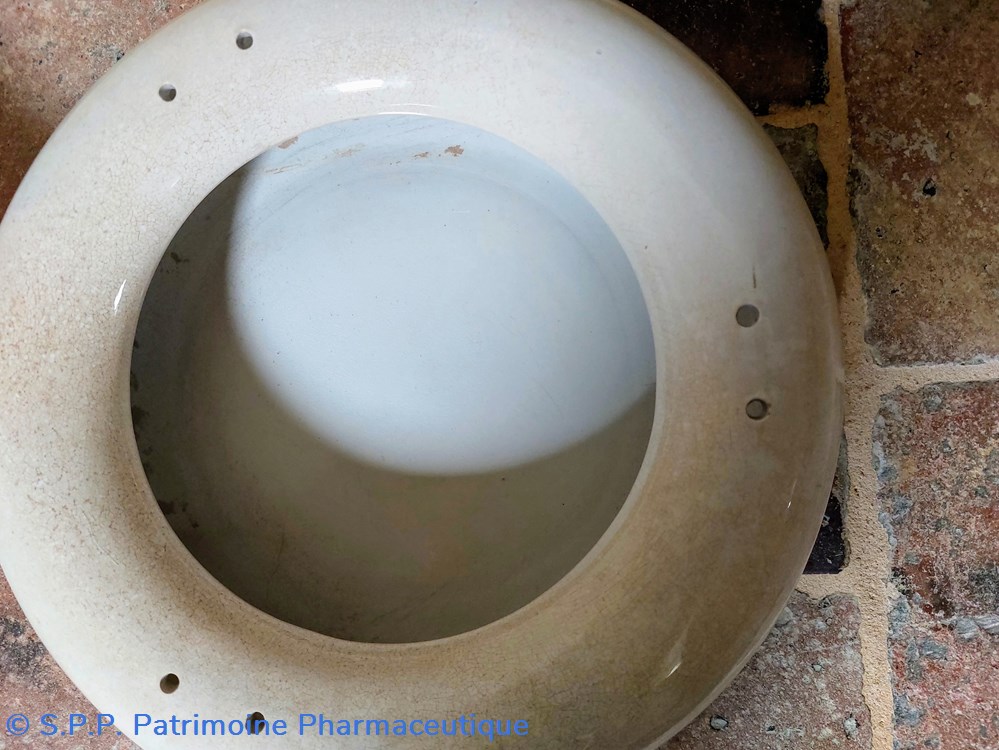 Il peut s'agir d'un crachoir de dentiste . Les crachoirs étaient remplis en partie avec de la sciure de bois, des cendres ou du sable.