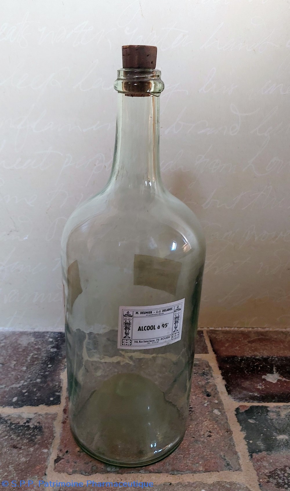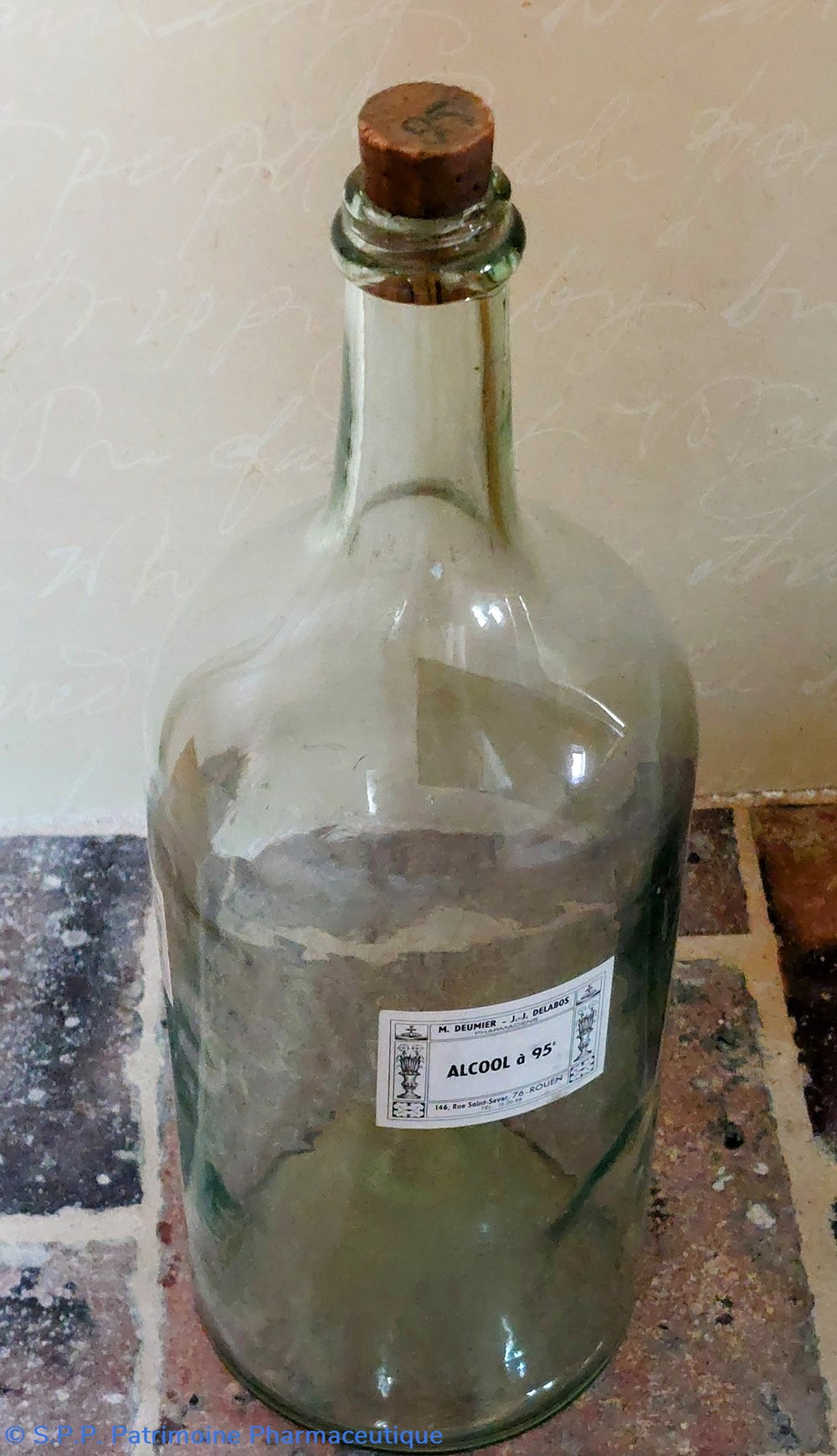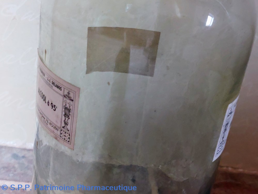 Trois petites étiquettes identiques précisent le contenu " ALCOOL à 95 degrés"