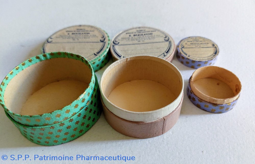 Lot de 3 boîtes rondes en carton de diamètres différents. 5.5 - 5 - et 3.3 cm