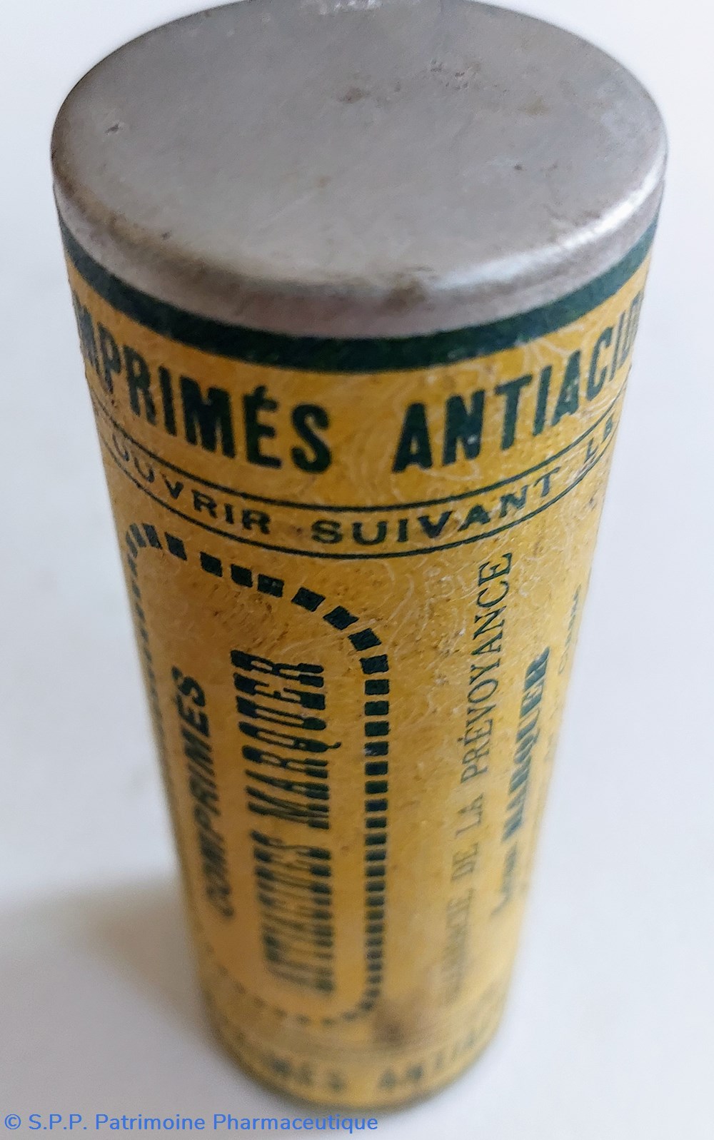 Tube métallique hauteur 6,5 cm Diamètre 3 cm contenant 50 Comprimés OPOCALCIUM VITAMINÉ "D" du Dr Guersant