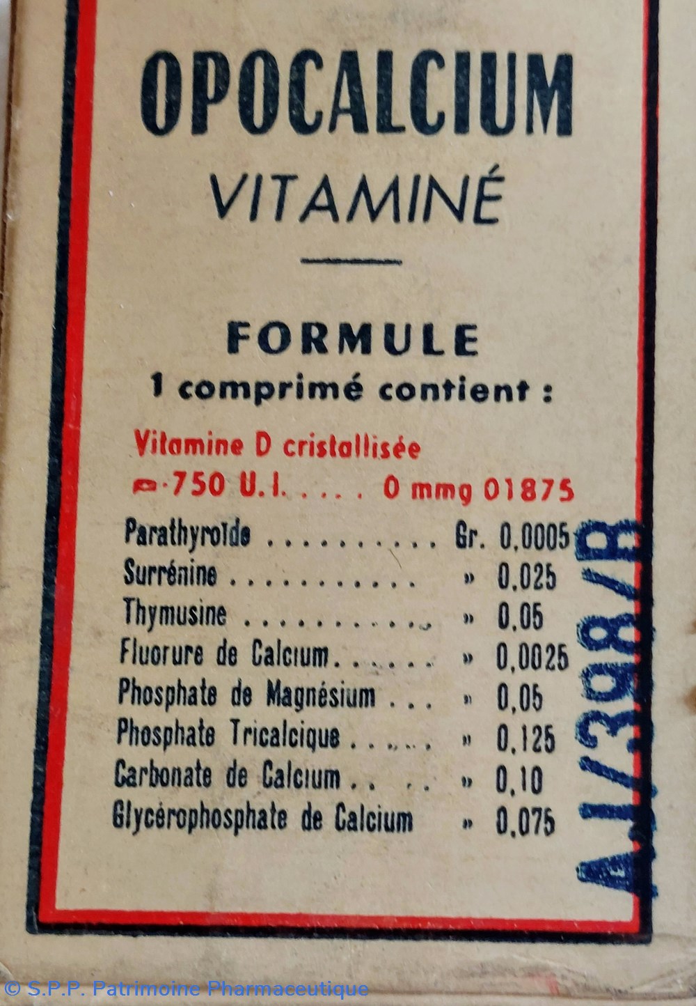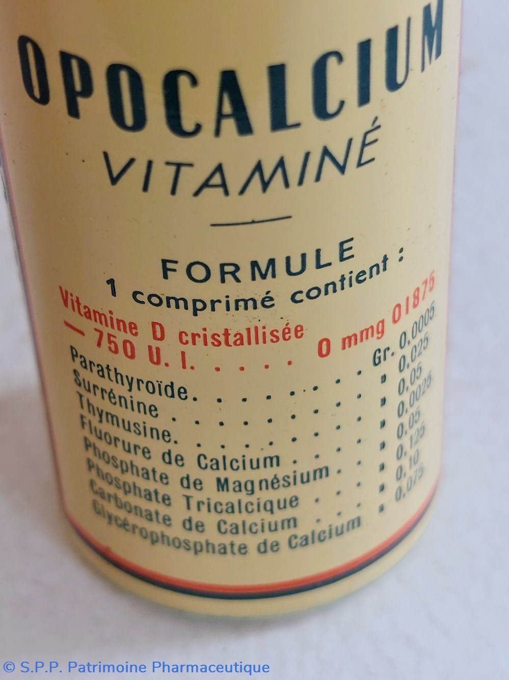 Formule : Parathyroide Surrenine Thymusine Fluore de calcium Phosphate de magnésium Phosphate Tricalcique Carbonate de calcium et Glycerophosphate de calcium.