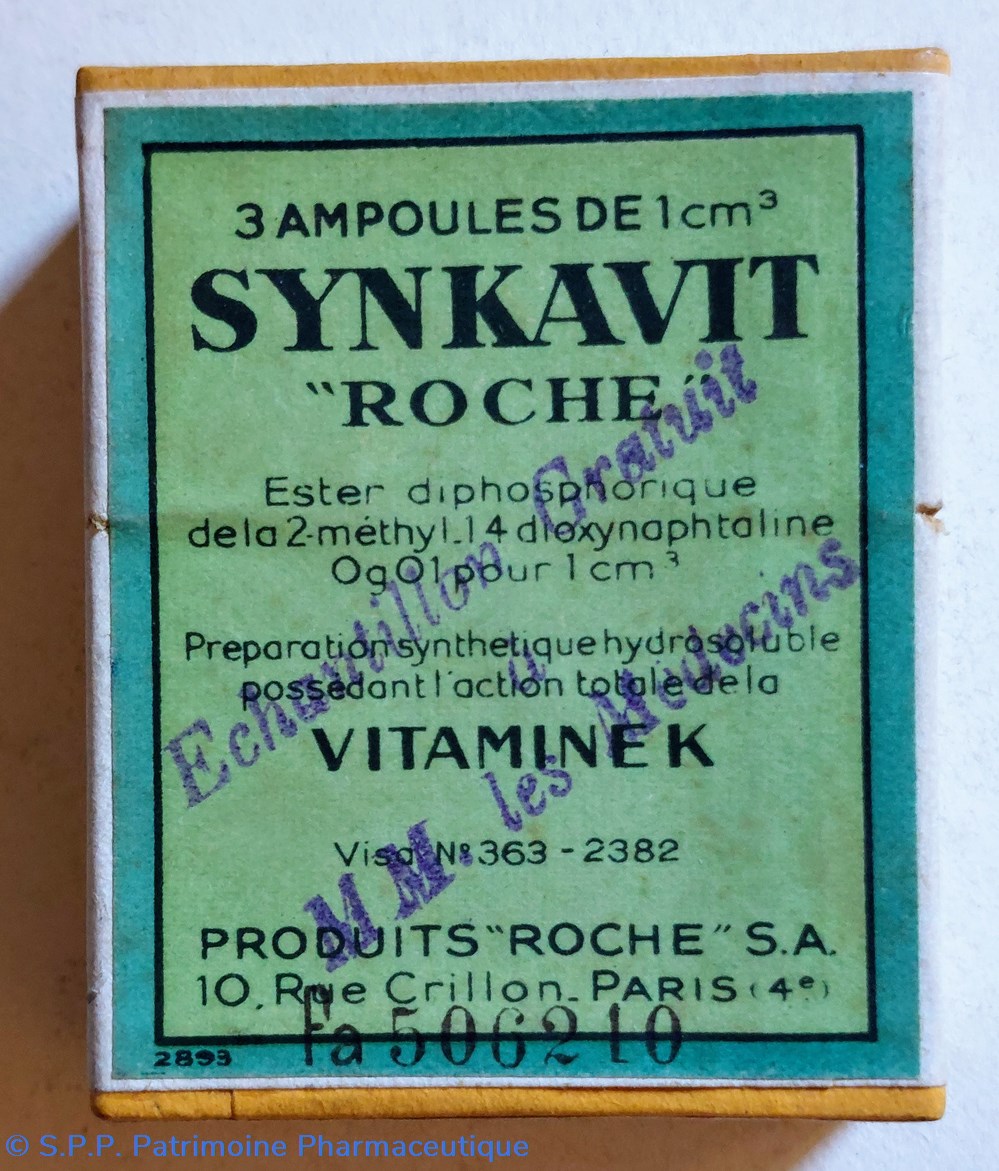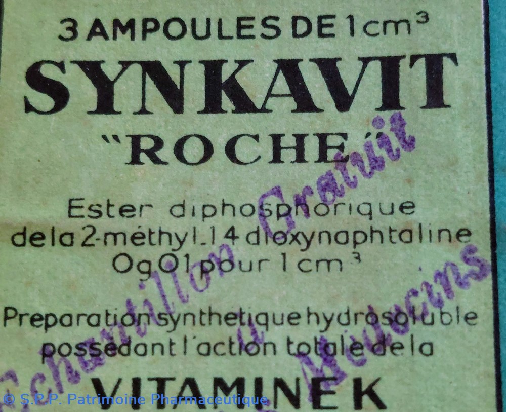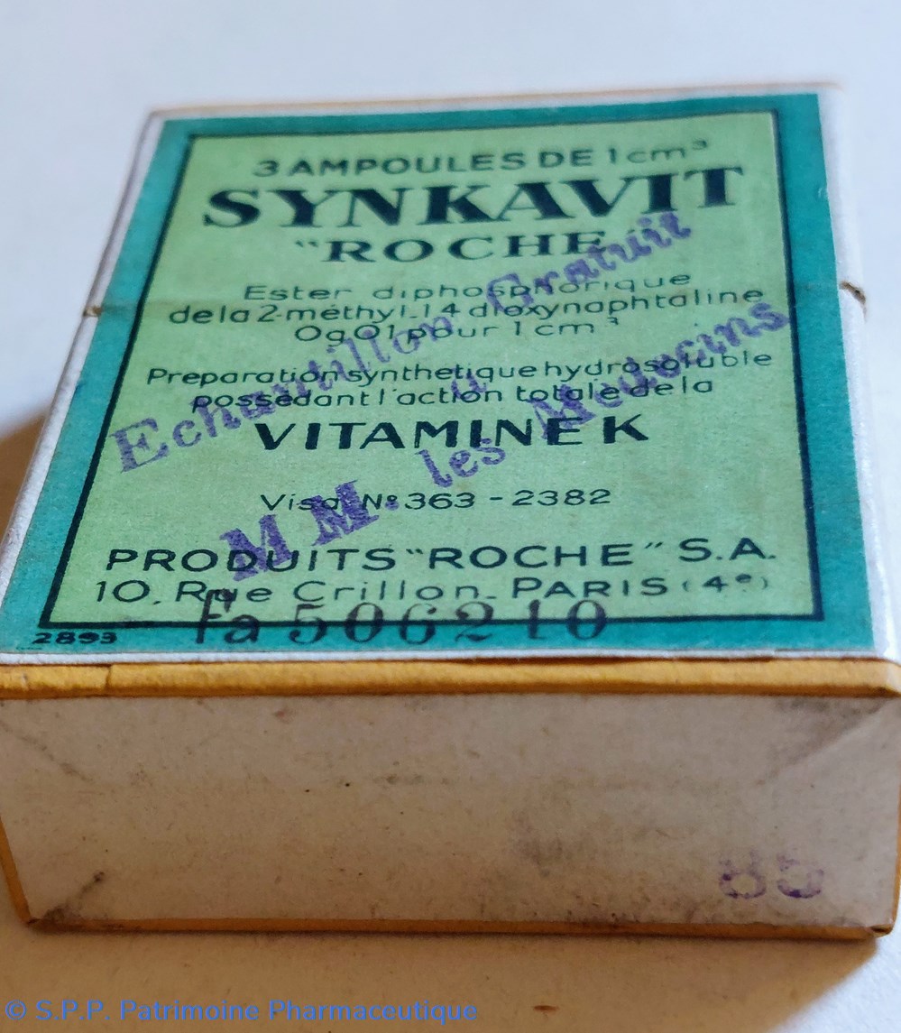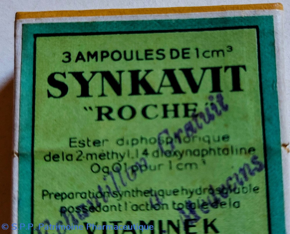 Coffret en carton scellé d'origine 5.5 *4.5 *2 cm contenant 3 ampoules de 1 cm3 SYNKAVIT - ROCHE