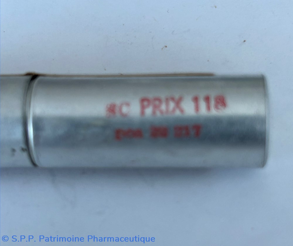 Petit tube en aluminium https://www.patrimoine-pharmaceutique.org/ Hauteur ; 7 cm diamètre 1.5 cm)