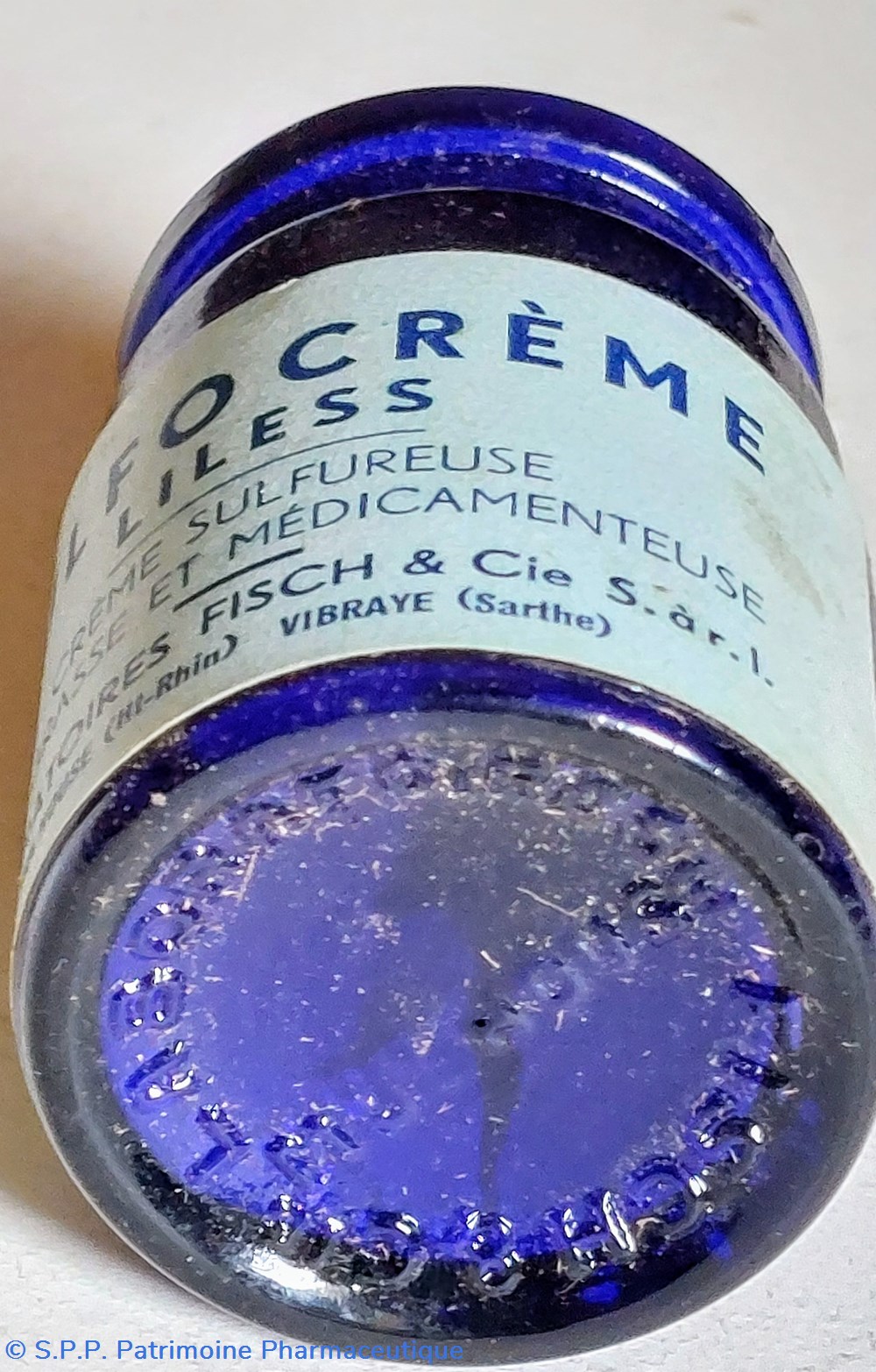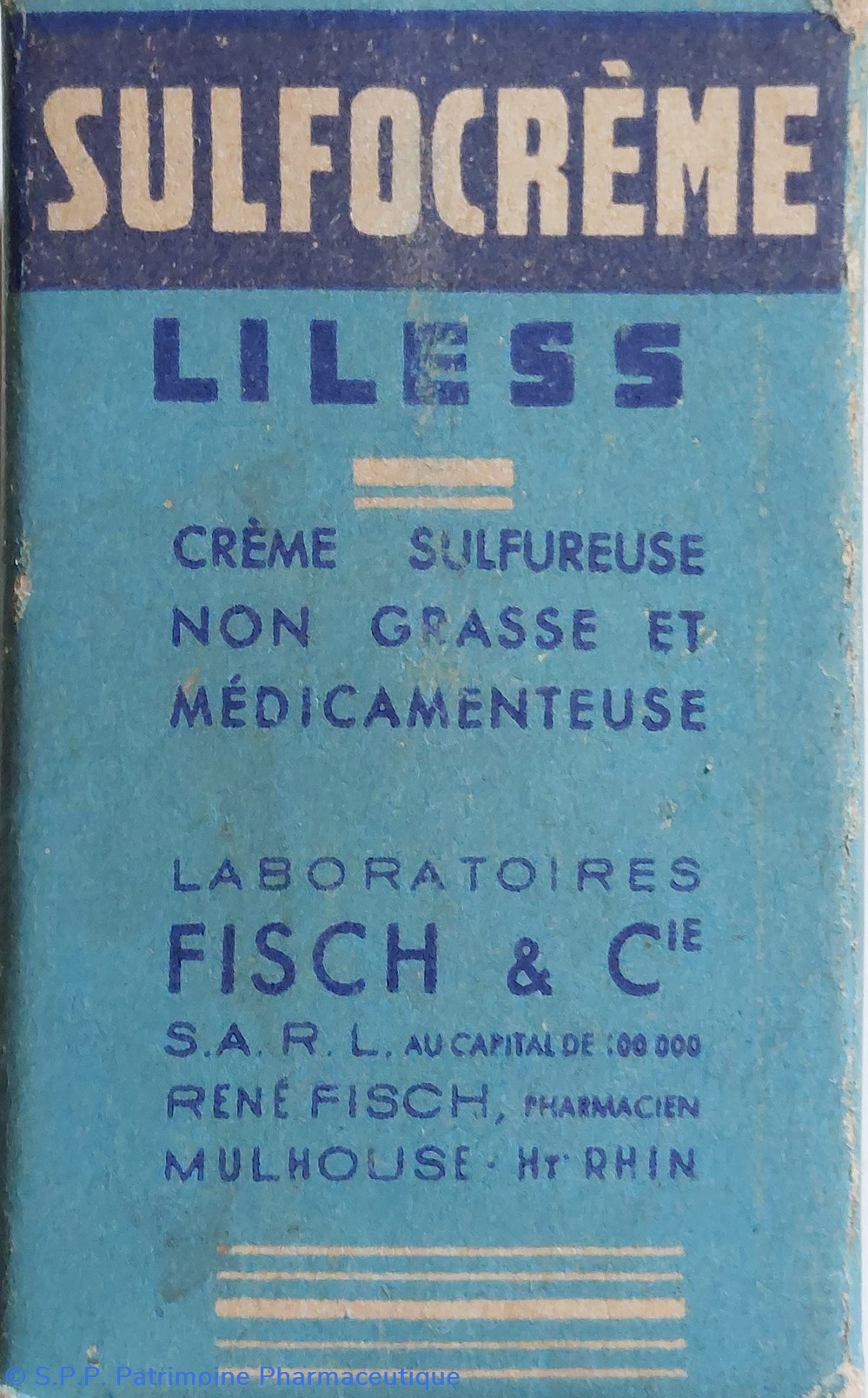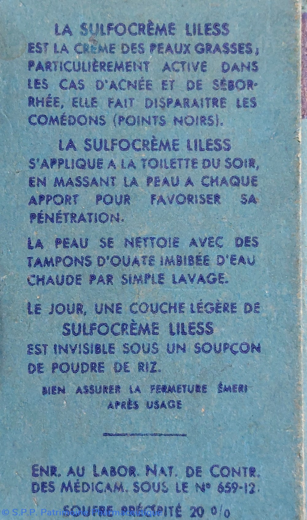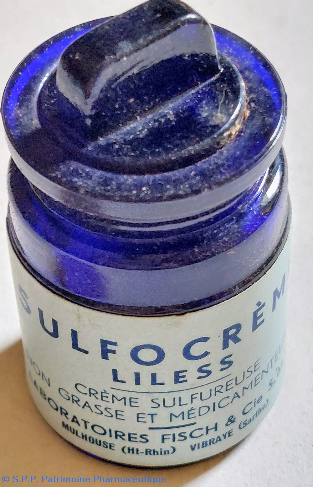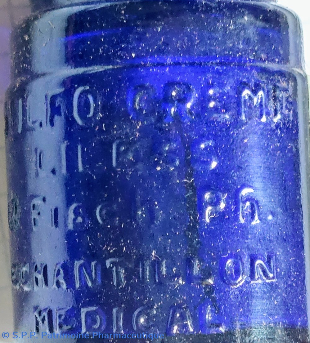 Pot de SULFOCRÈME LILESS " Crème sulfureuse non grasse et médicamenteuse particulièrement active dans les cas d'acnée et de séborrhée."