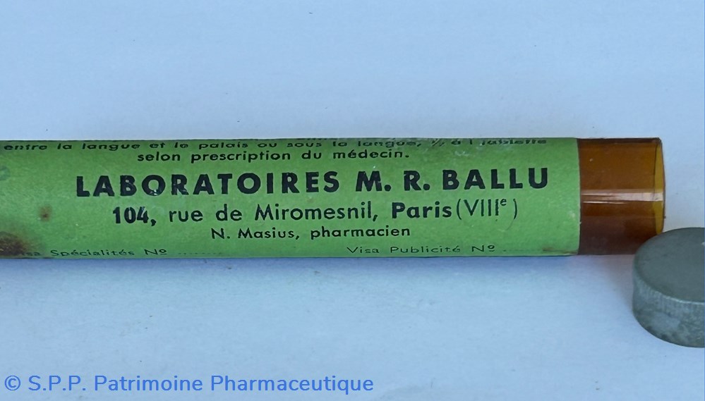 Laboratoires M.R. BALLU 104 rue de Miromesnil Paris VIIIème N. Maslus Pharmacien