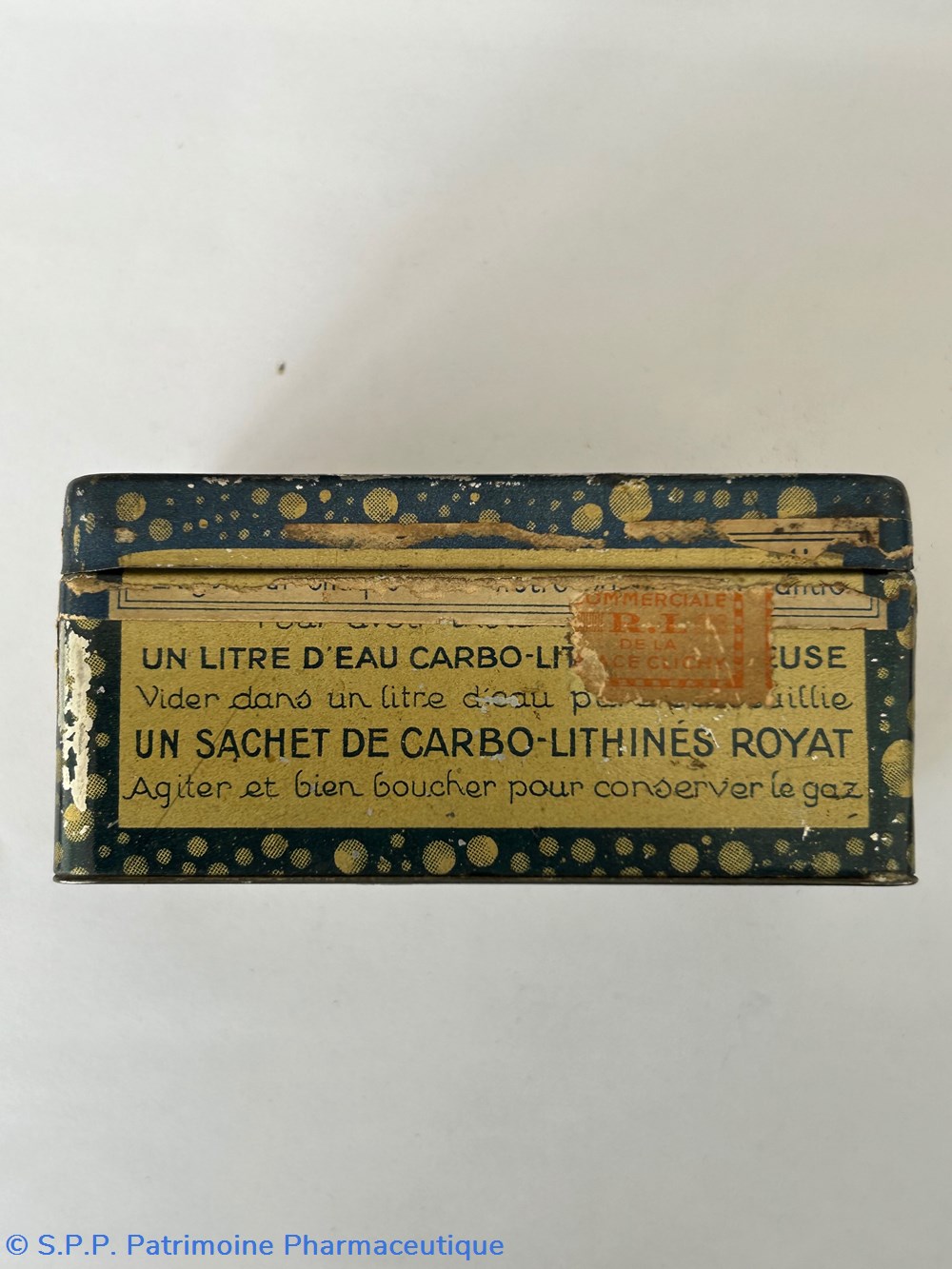 Cette boîte devait contenir des sachets pour obtenir de l'eau carbo-lithinée gazeuse