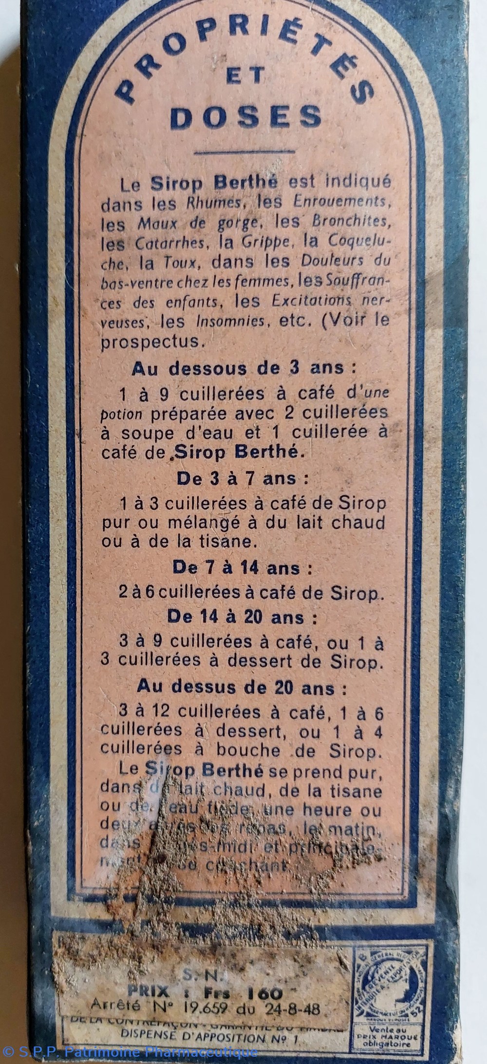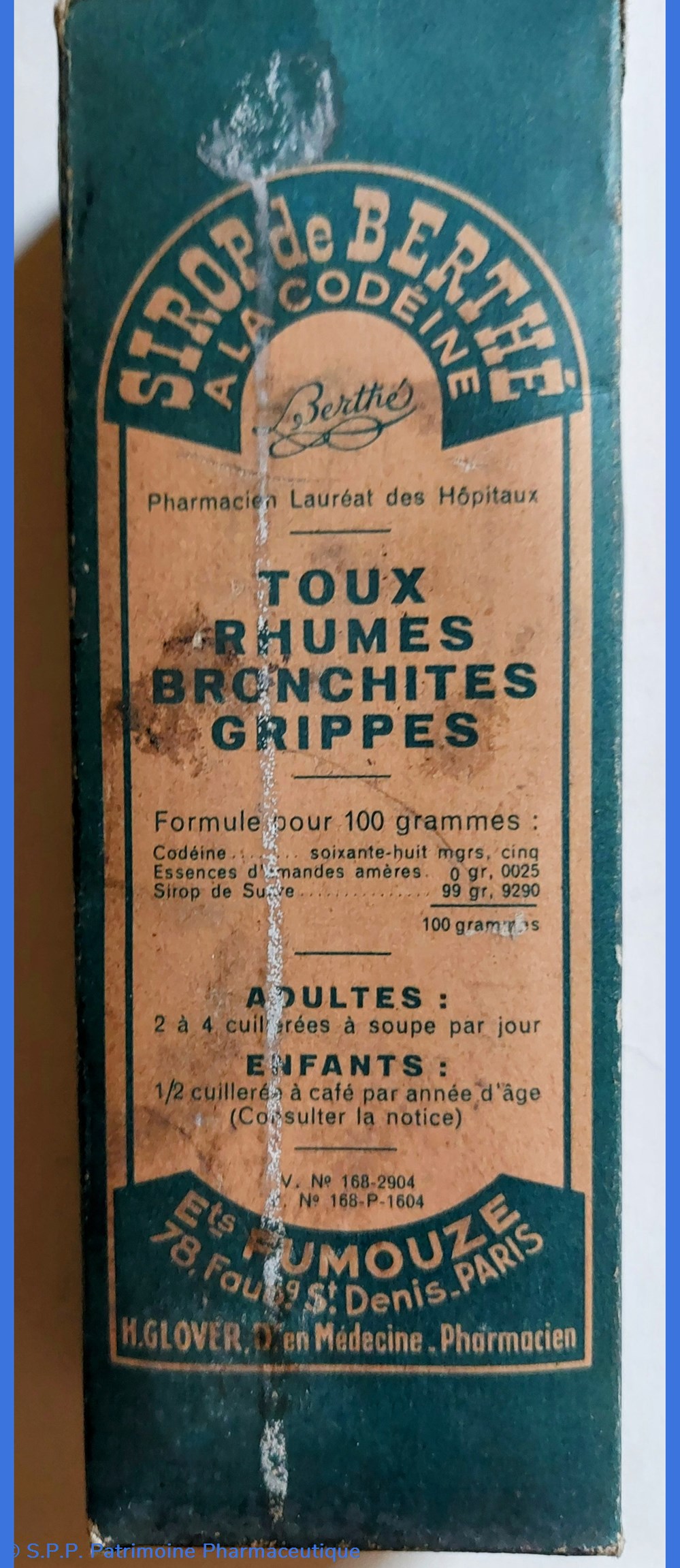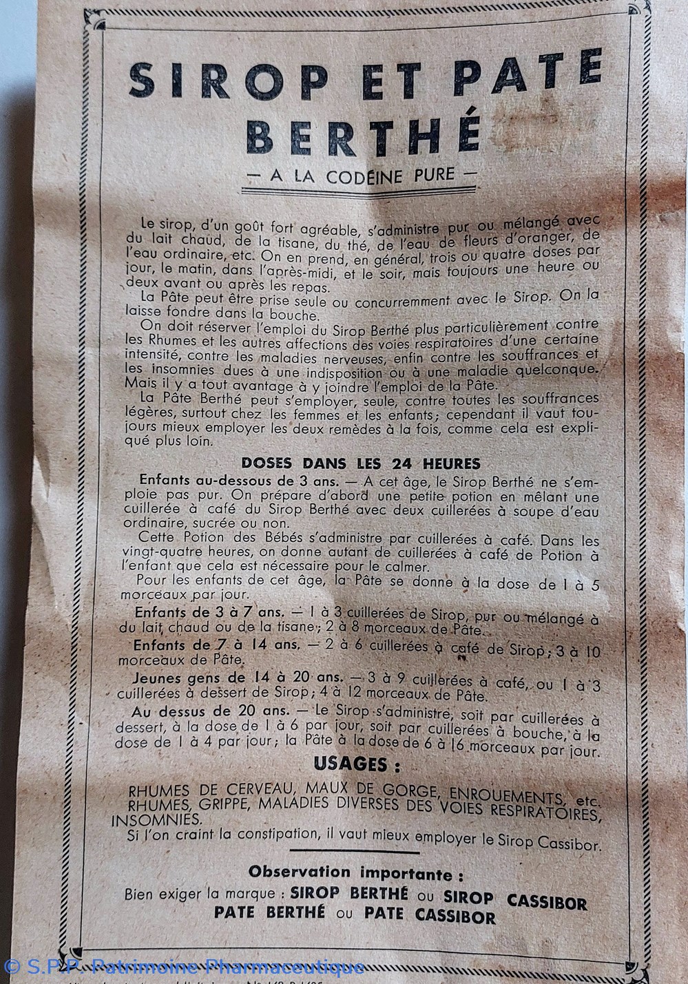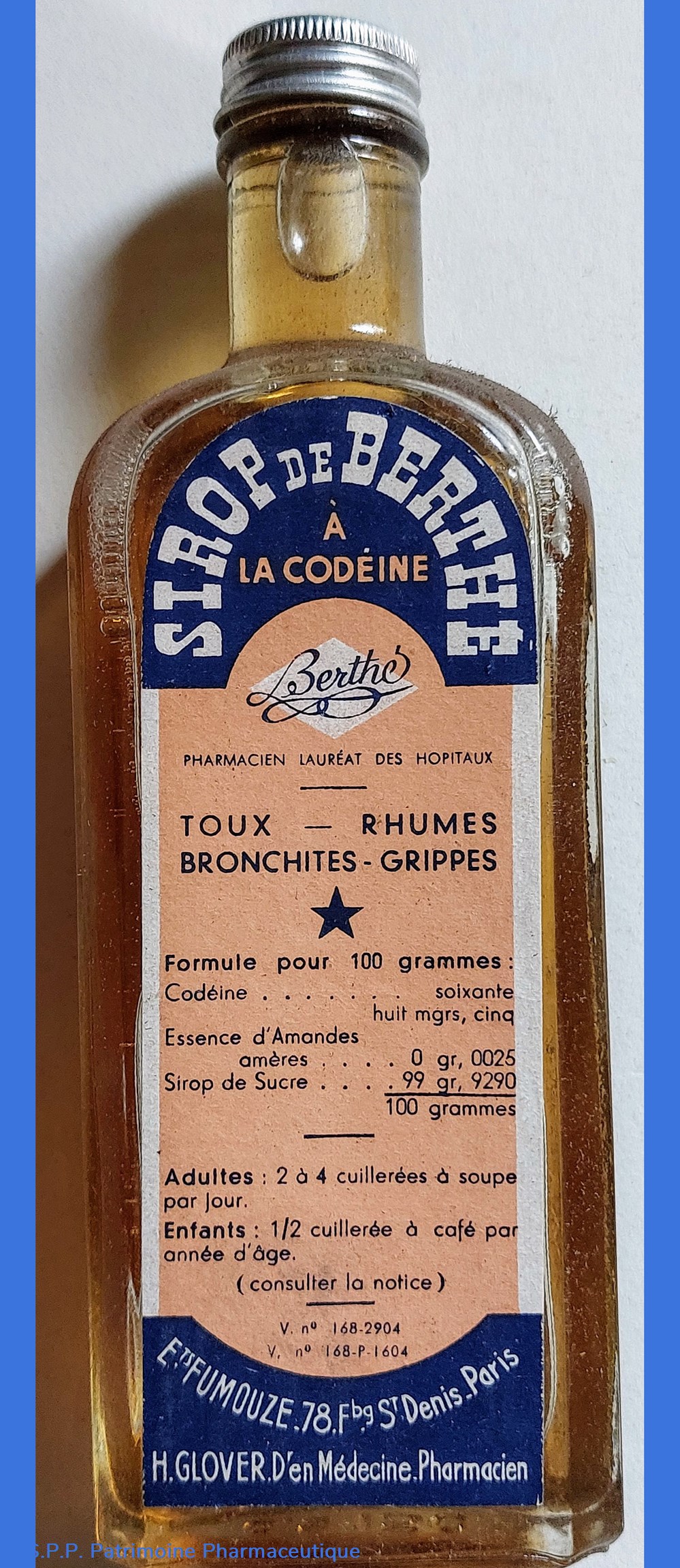 Flacon en verre Hauteur 16.5 et base 5.5 *3 cm de SIROP DE BERTHÉ ou Sirop CASSIBOR à la Codéine. Pour adultes et enfants