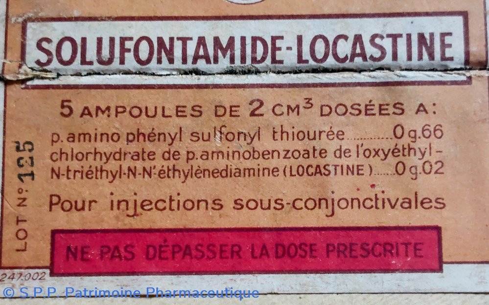 Ps. amino phényl sulfonyl thiourée, Chlorhydrate de p. aminobenzoate de l'oxyethyl- N-N'ethylenediamine.