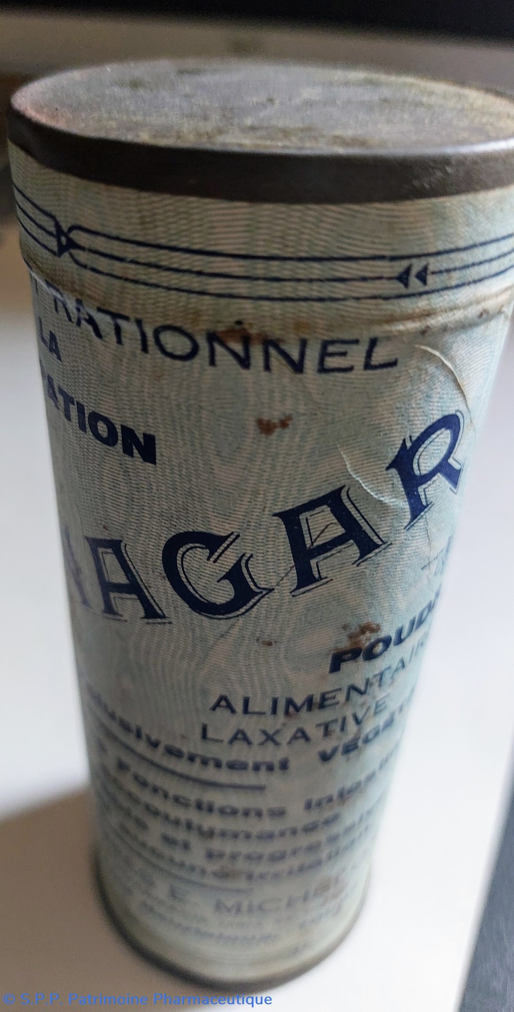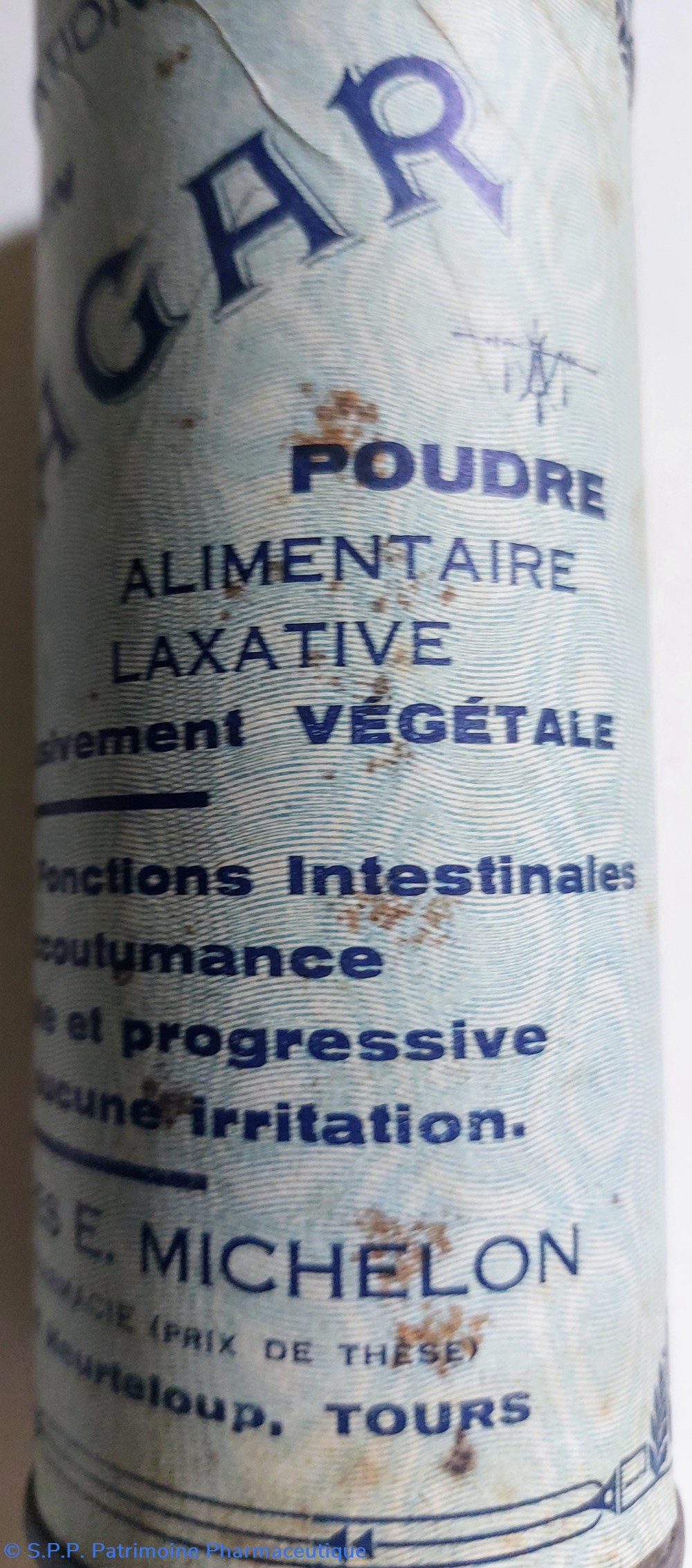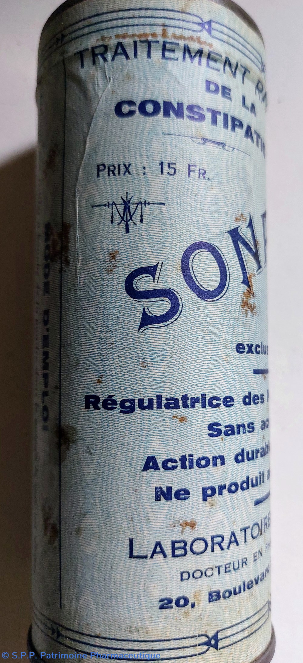 Tube métallique hauteur 14.5 diamètre 5.5 cm contenant un TRAITEMENT RATIONNEL DE LA CONSTIPATION SONAGAR en poudre alimentaire et laxative.