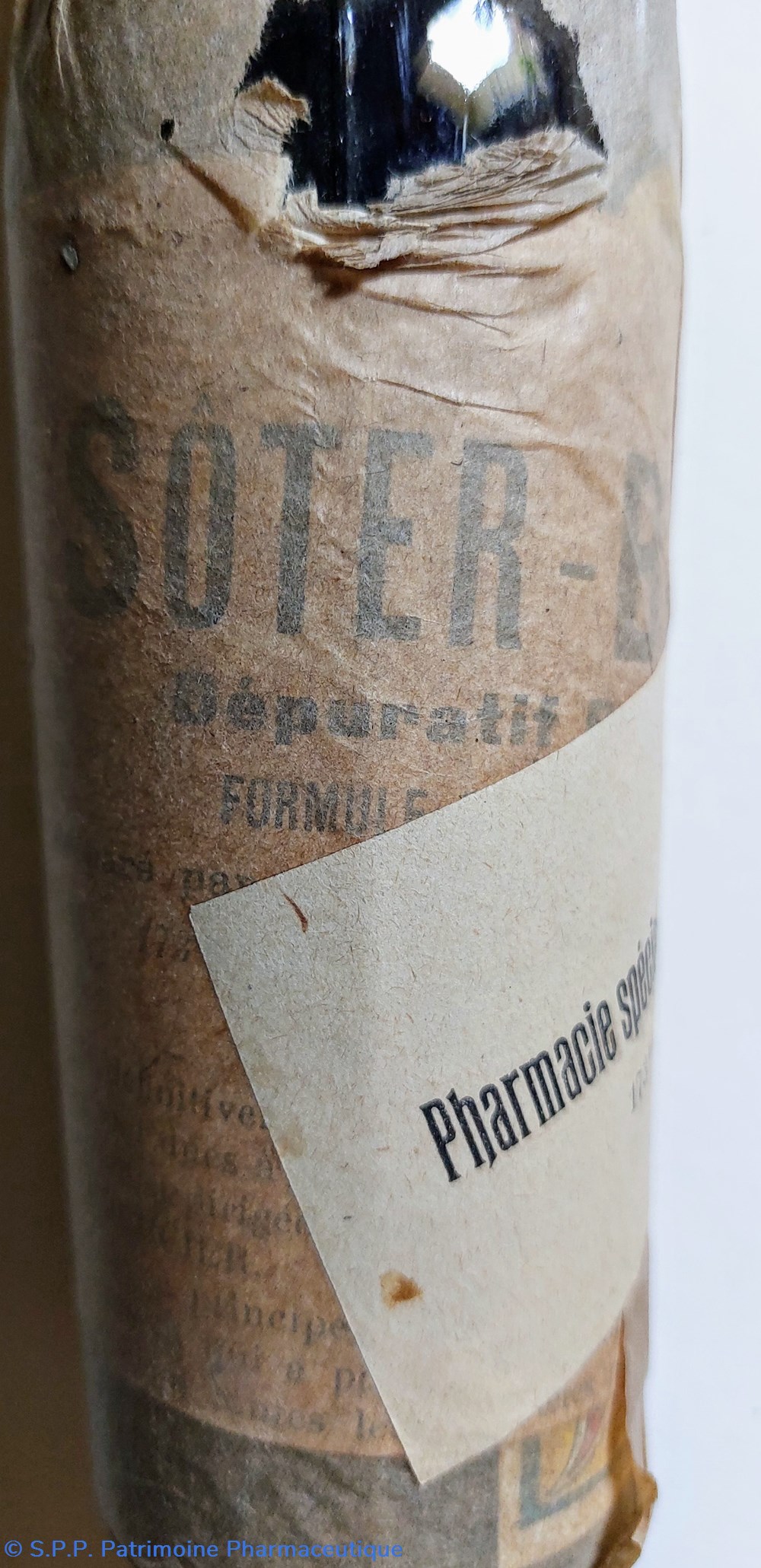 Sous coffret en carton ( hauteur 26cm base 6.5*6,5. Cm) Bouteille scellée et enveloppée de DÉPURATIF SOTER BAZIN