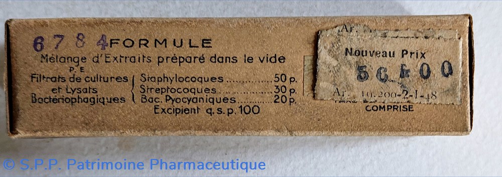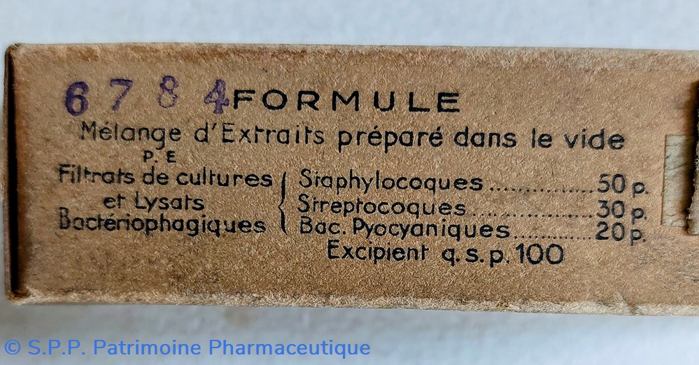 Formule : Staphylocoques streptocoques, Bac. Pyocyaniques.