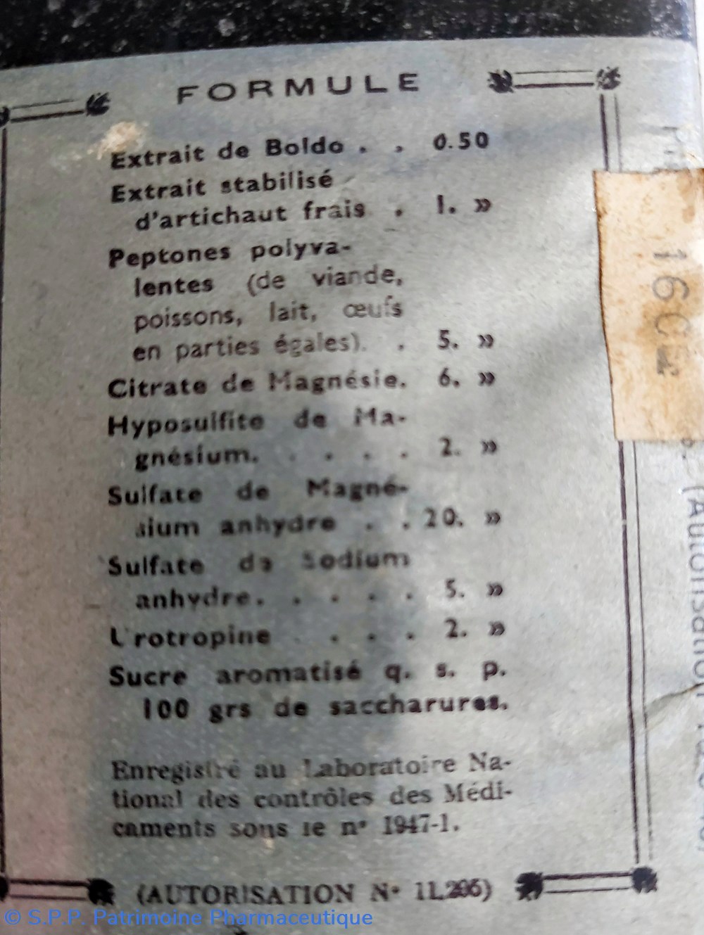 Formule lodobismuthate de quinine solubilisé et eau distillée.