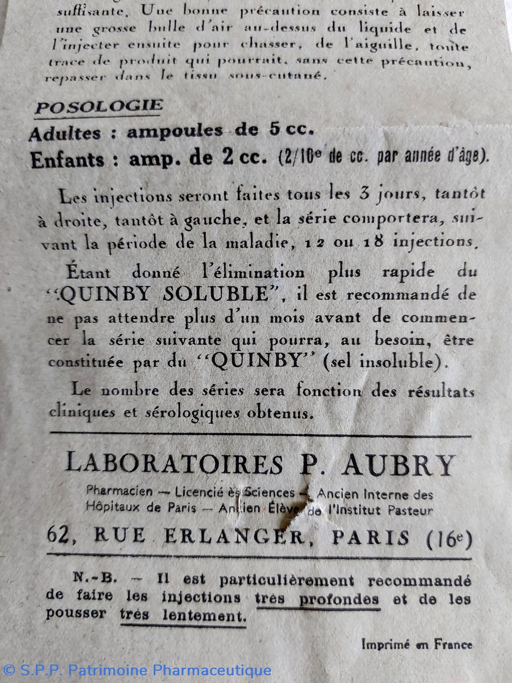 Laboratoires P. AUBRY à Paris - 286 Fr