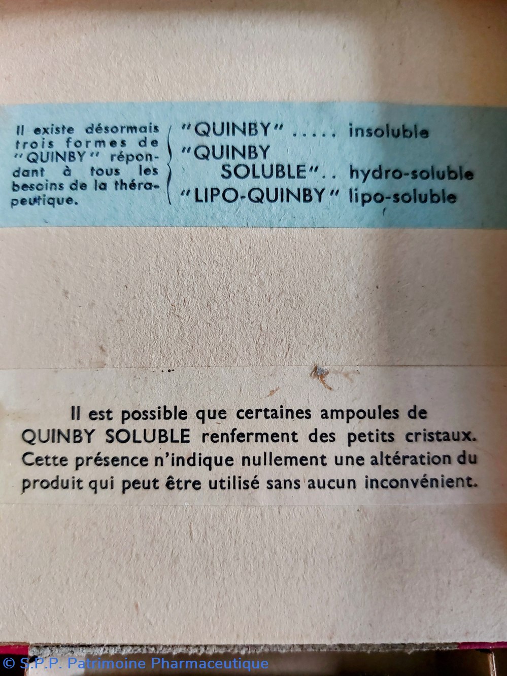 Il existe 3 sortes de QUINBY : insoluble hydro-soluble et lipo-soluble