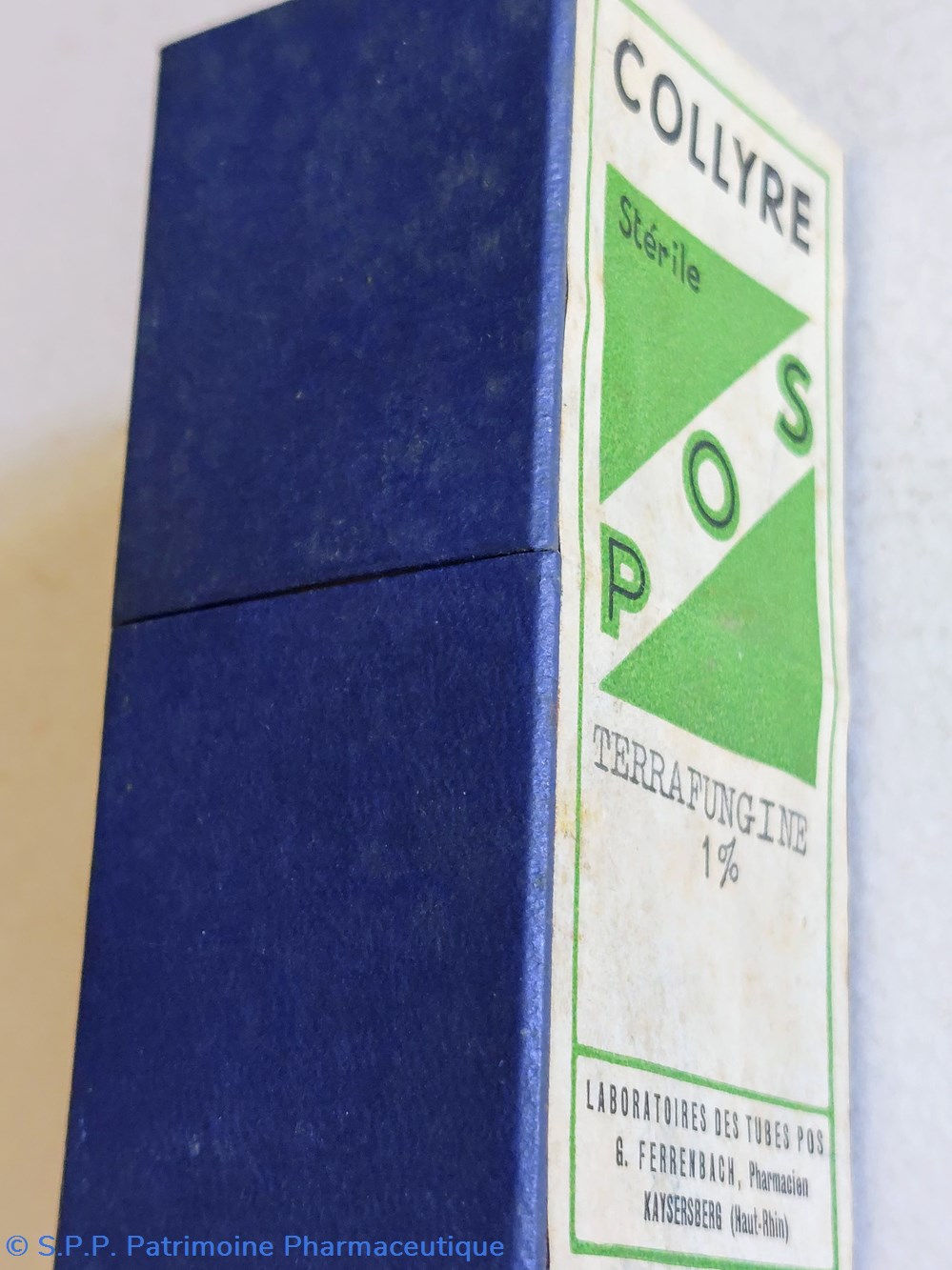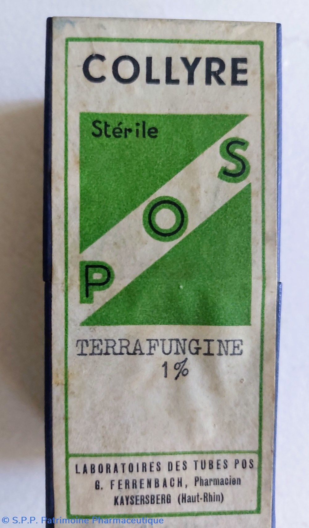 Conditionnement en carton (9.5*4*4cm) contenant du COLLYRE STÉRILE TERRAFUNGINE 1%.