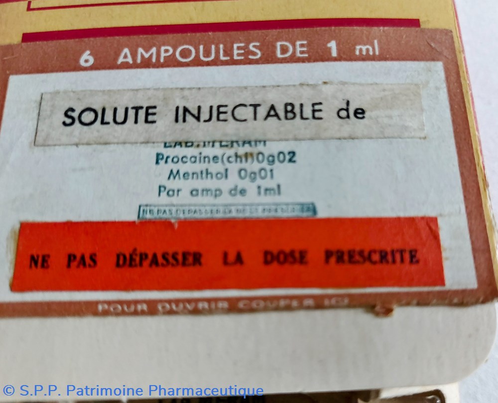 SOLUTÉ INJECTABLE de PROCAÏNE ( chl 0g02) et Menthol