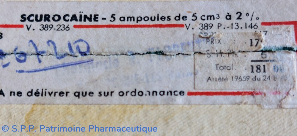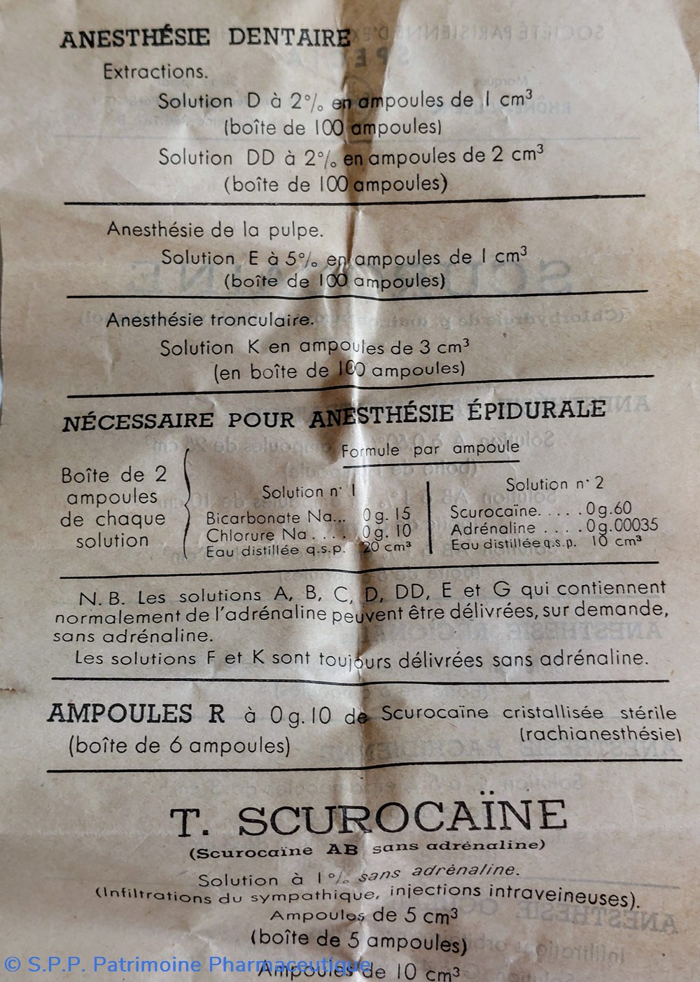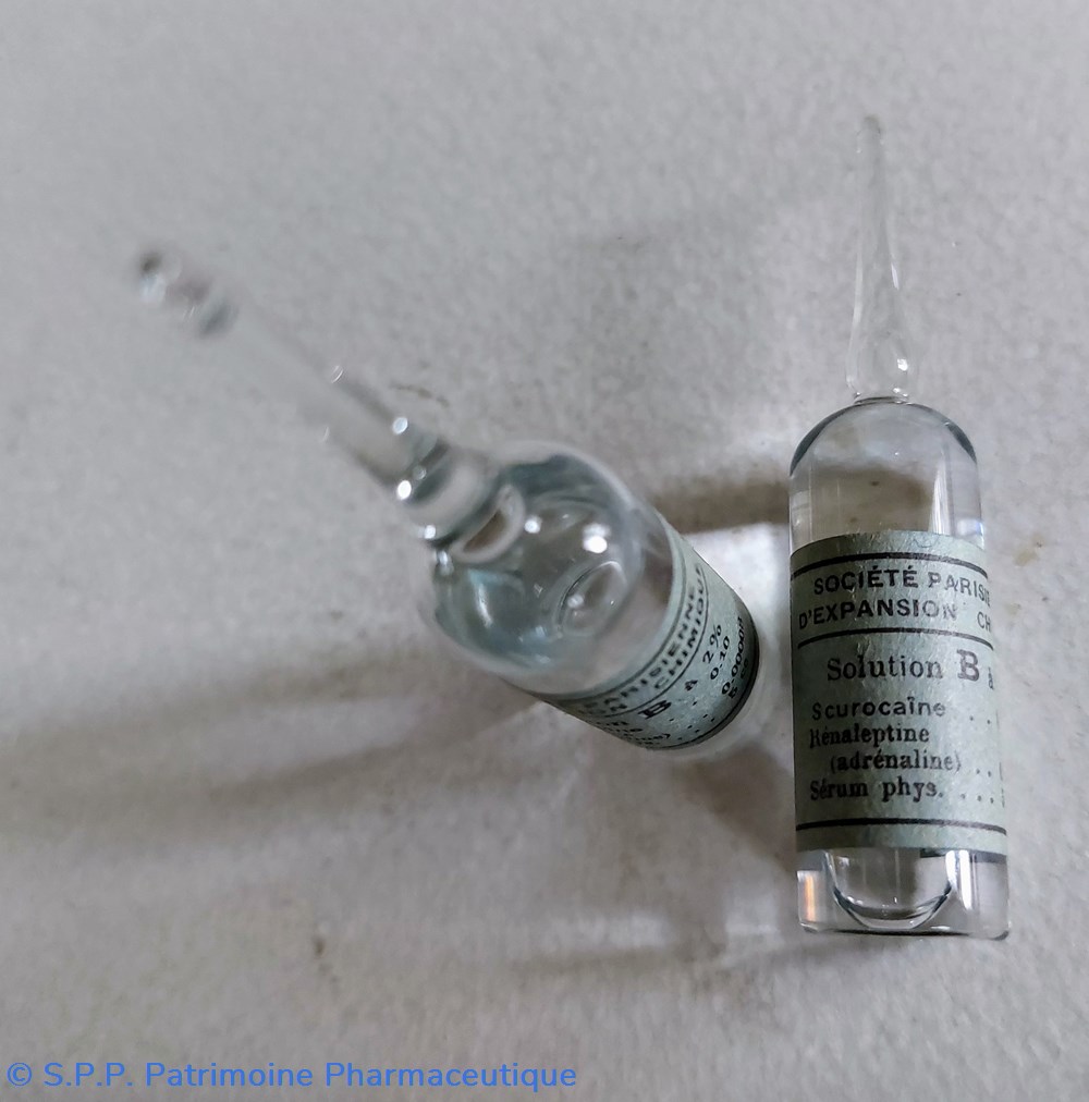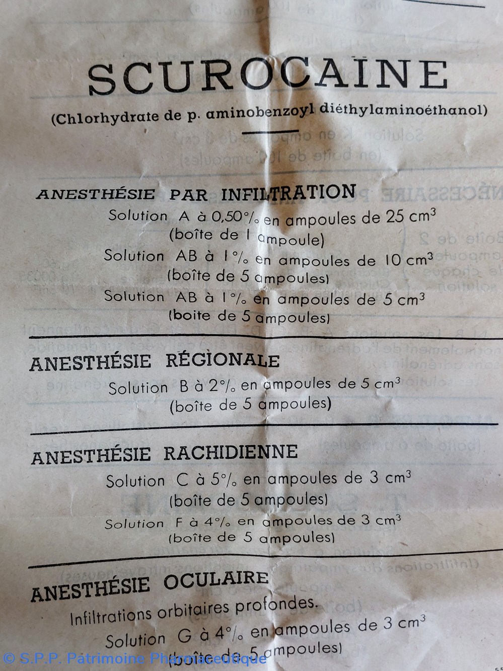 Coffret en carton( 8.5*8*2 cm) ayant contenu 5 AMPOULES 5 Cm3 de SCUROCAÏNE additionnées de RENALEPTINE (adrénaline).