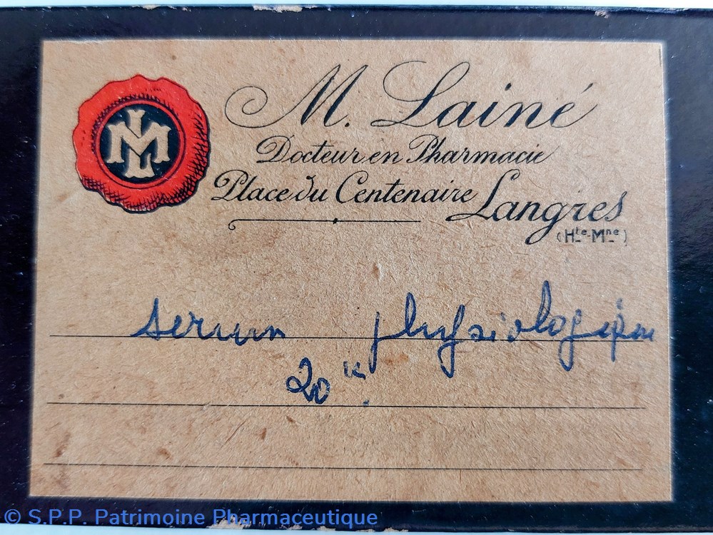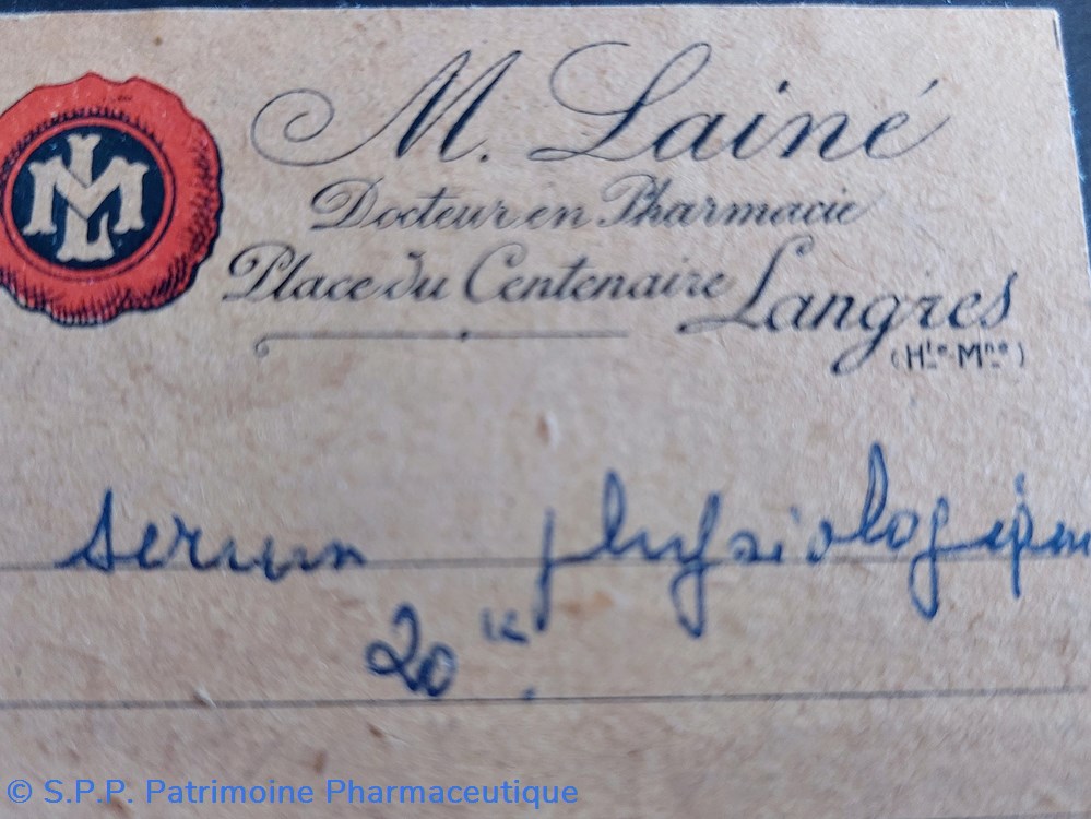 Fournisseur. M. LAINÉ Docteur en pharmacie place du Centenaire à Langres.