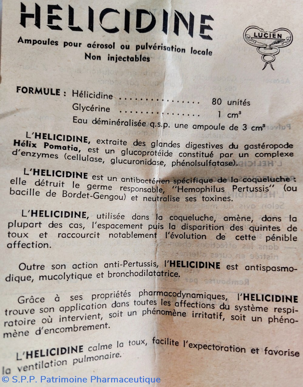 HELICIDINE ( extrait des glandes digestives du gastéropodes)