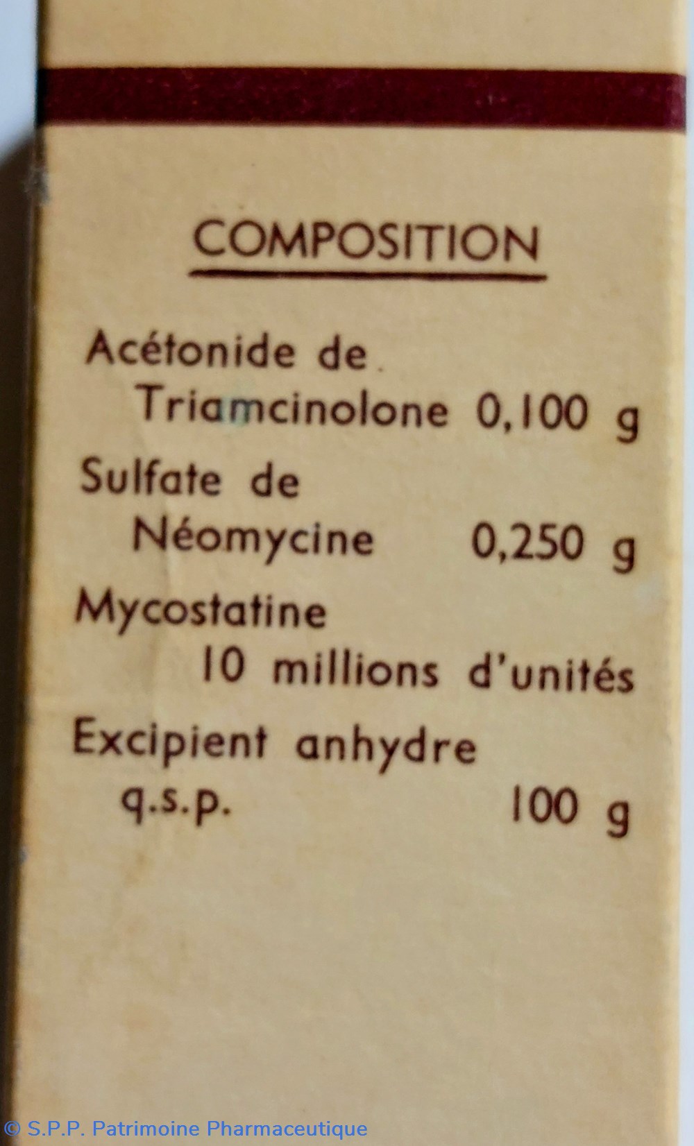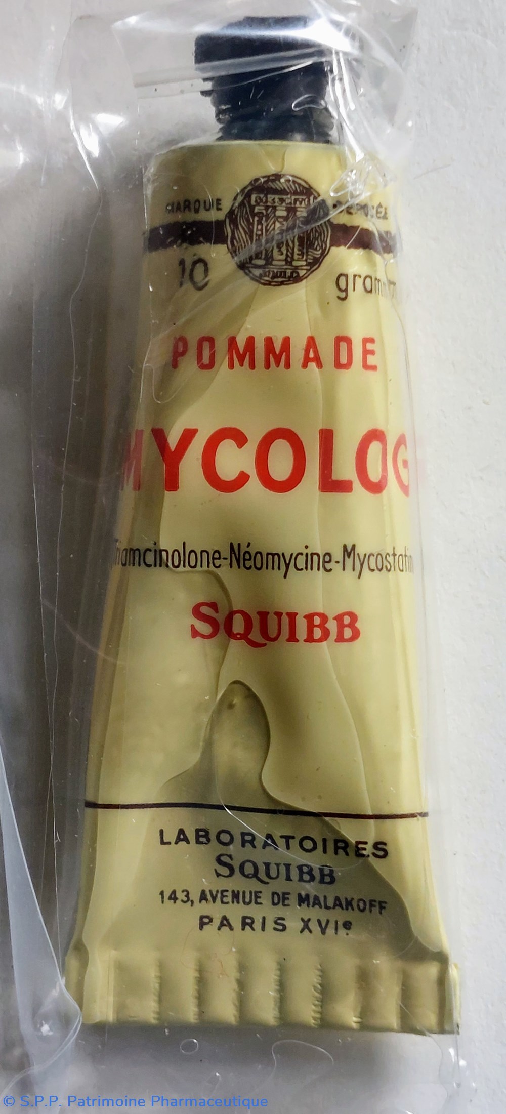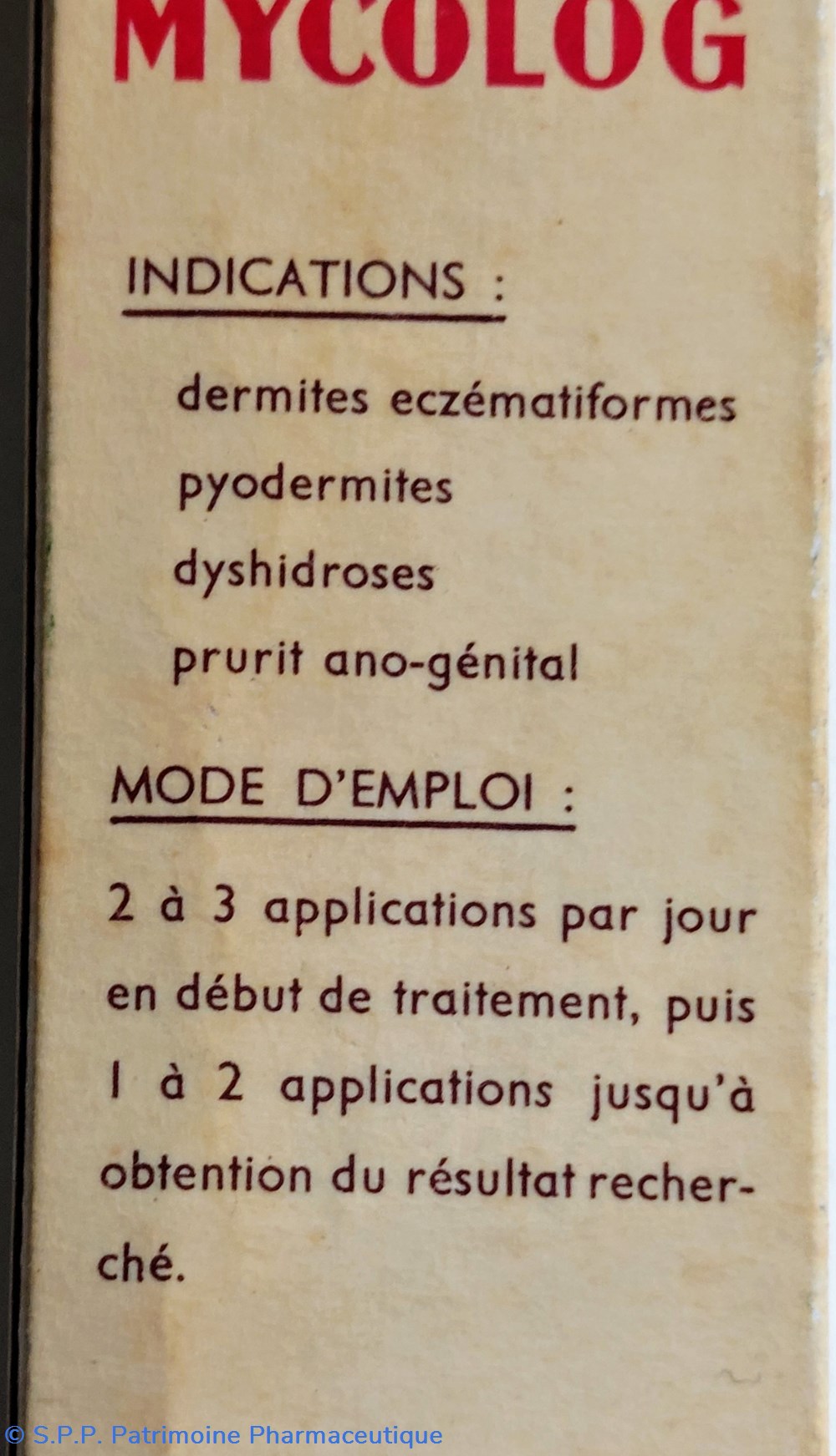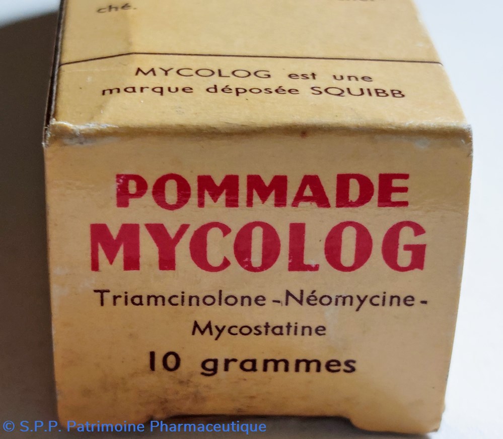 Tube de 10 grammes de pommade MYCOLOG : Triamcinolone Néomycine Mycostatine.