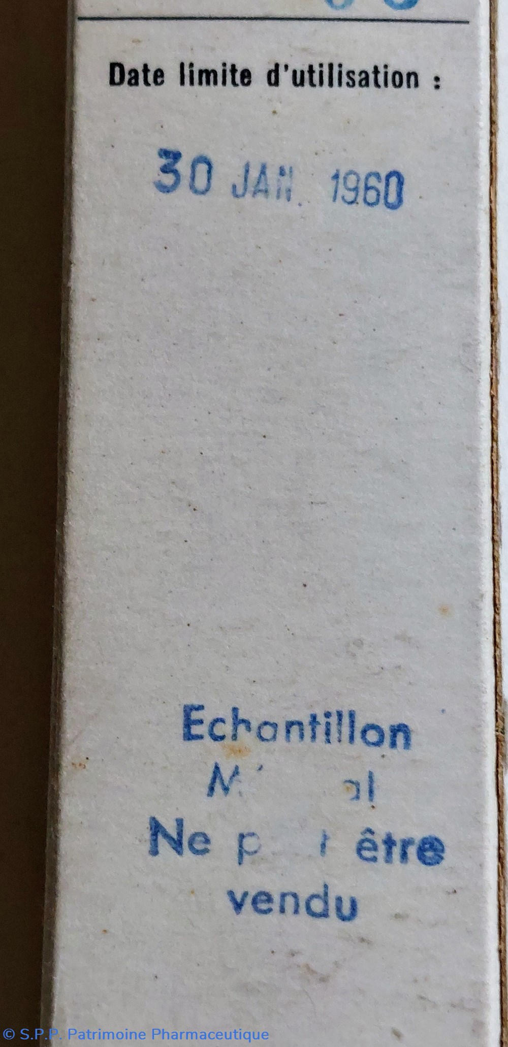 Échantillon médical Date limite d'utilisation : 30 Jan 1960