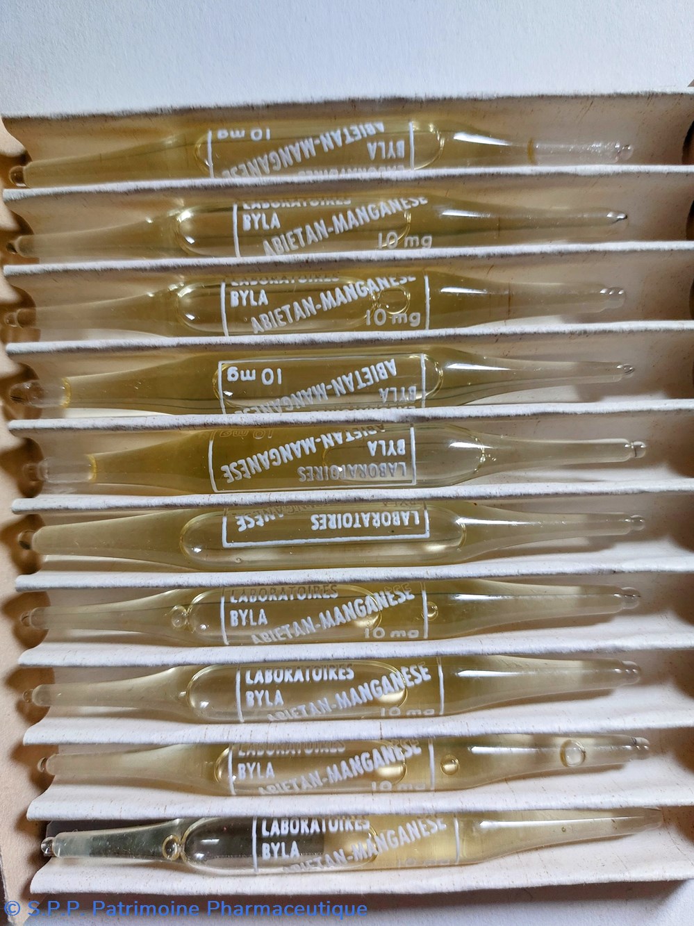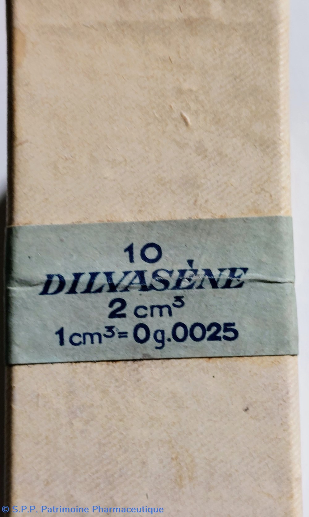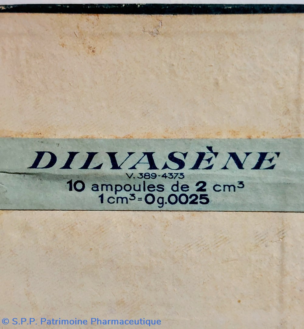 10 Ampoules de 2 cm3 de DILVASÈNE correspondant à 0.0025 G. de iodométhylate du diméthylamino, Méthylène, Dioxy 2-3 Propane