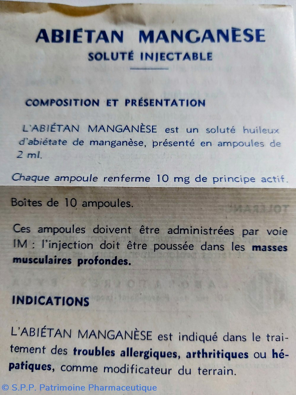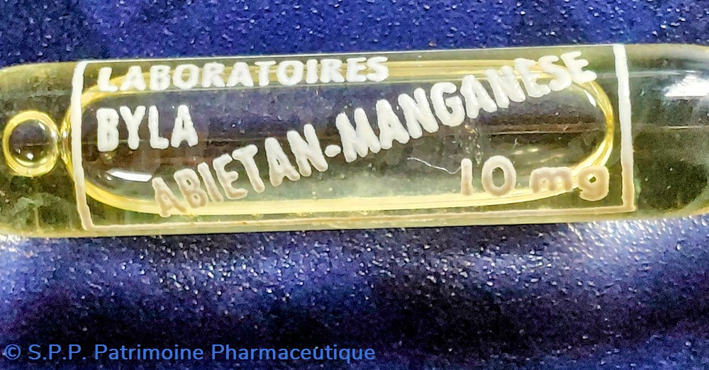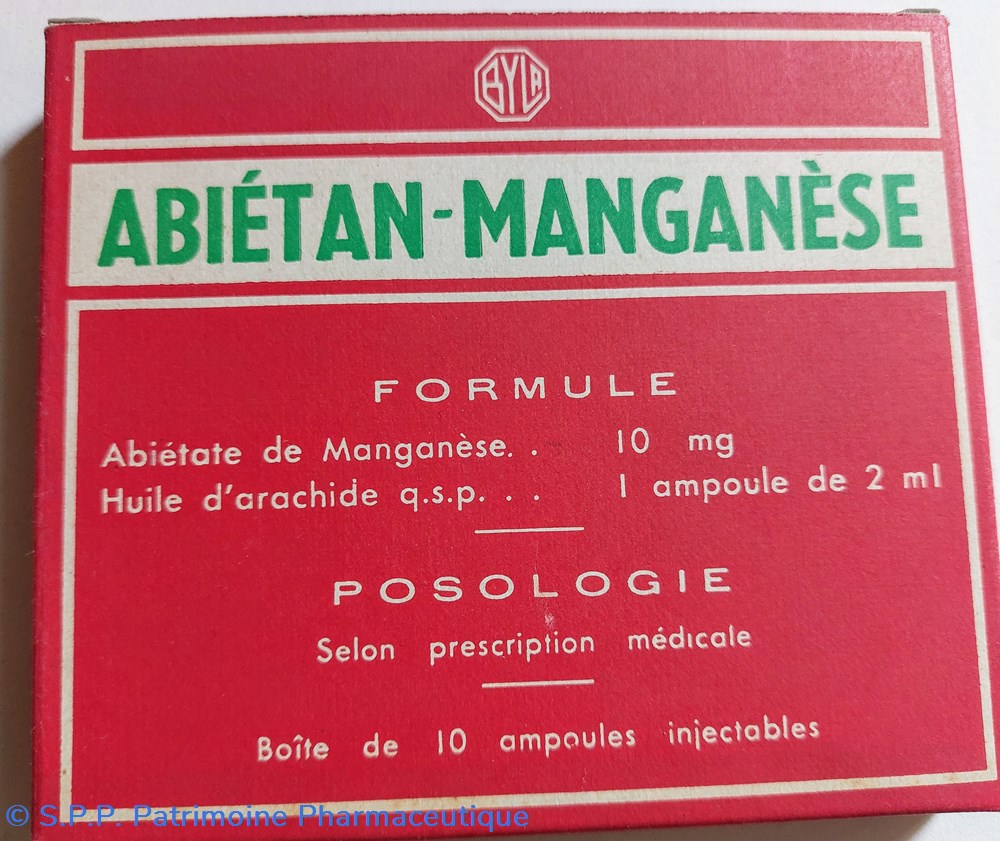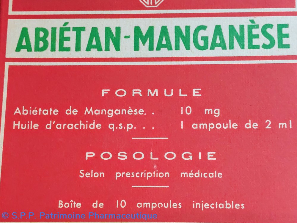 Soluté huileux d'Abiétate de MANGANÈSE et d'huile d'arachide en ampoules de 2 ml.