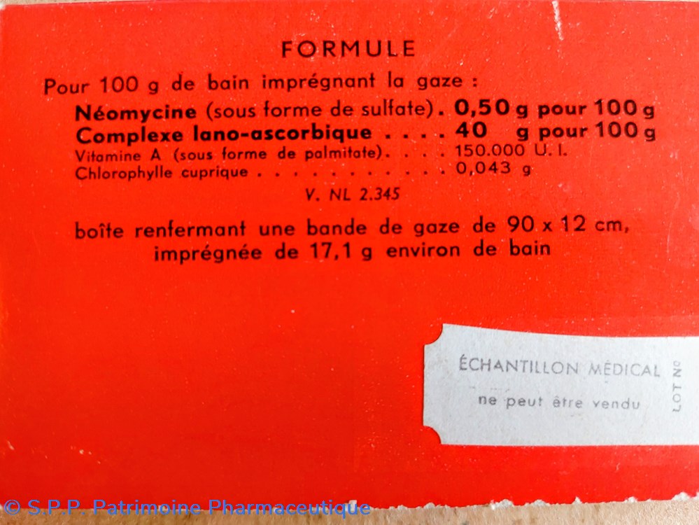 Formule : Néomycine, Complexe lano- ascorbique, Vitamine A , Chlorophylle cuprique