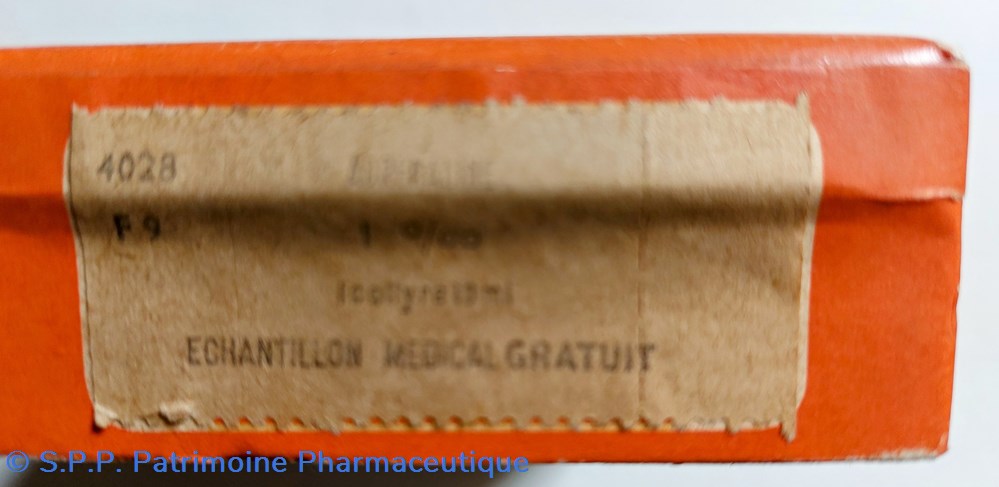Échantillon médical sous coffret en carton 9*7.5*3,5 cm . Produit stérilisé isotonique. Boîte ouverte mais non utilisée.