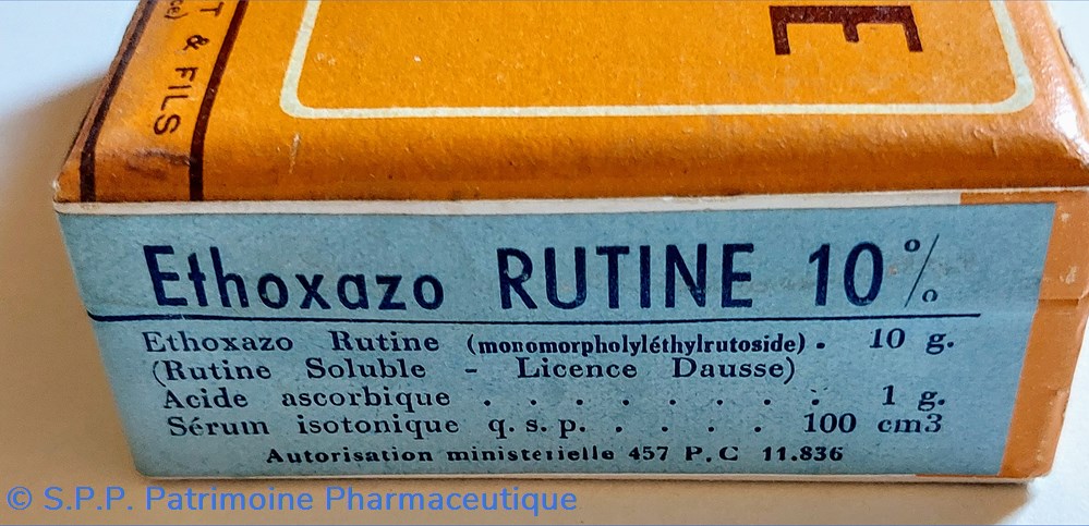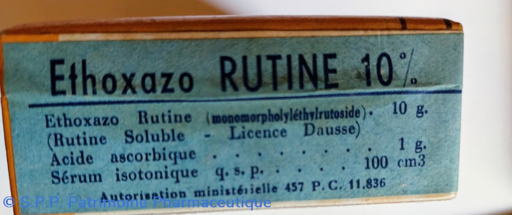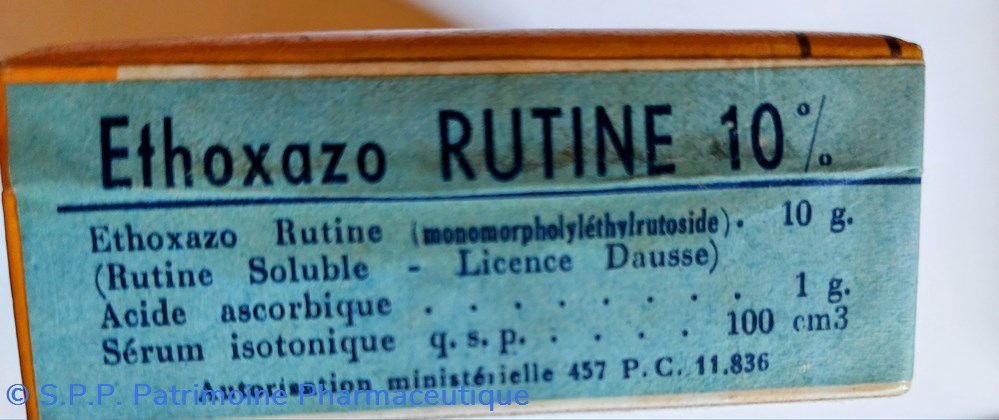 Ethoxazo RUTINE 10 g. comprenant : Monomorpholyléthylrutoside, Acide ascorbique, Sérum isotonique