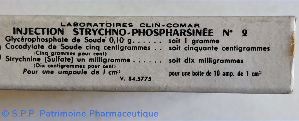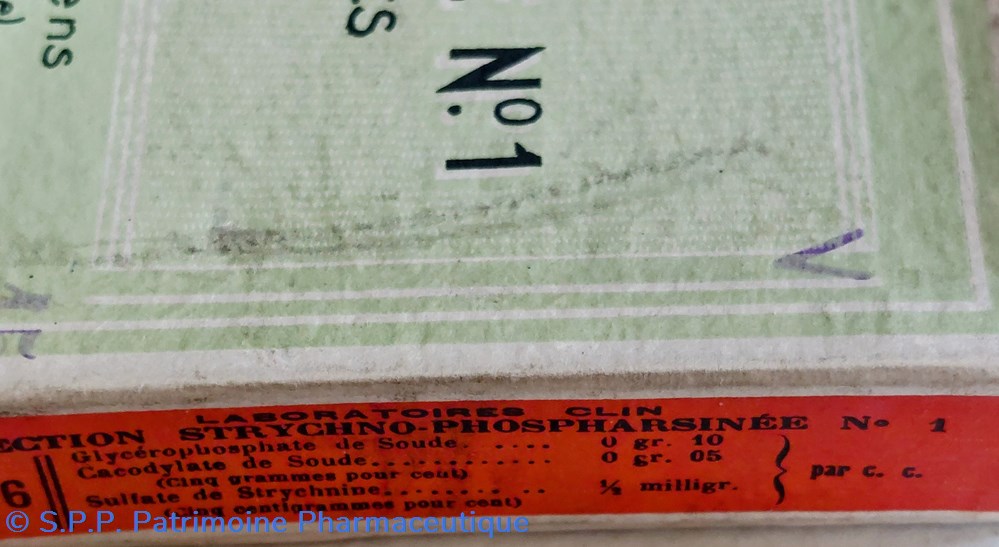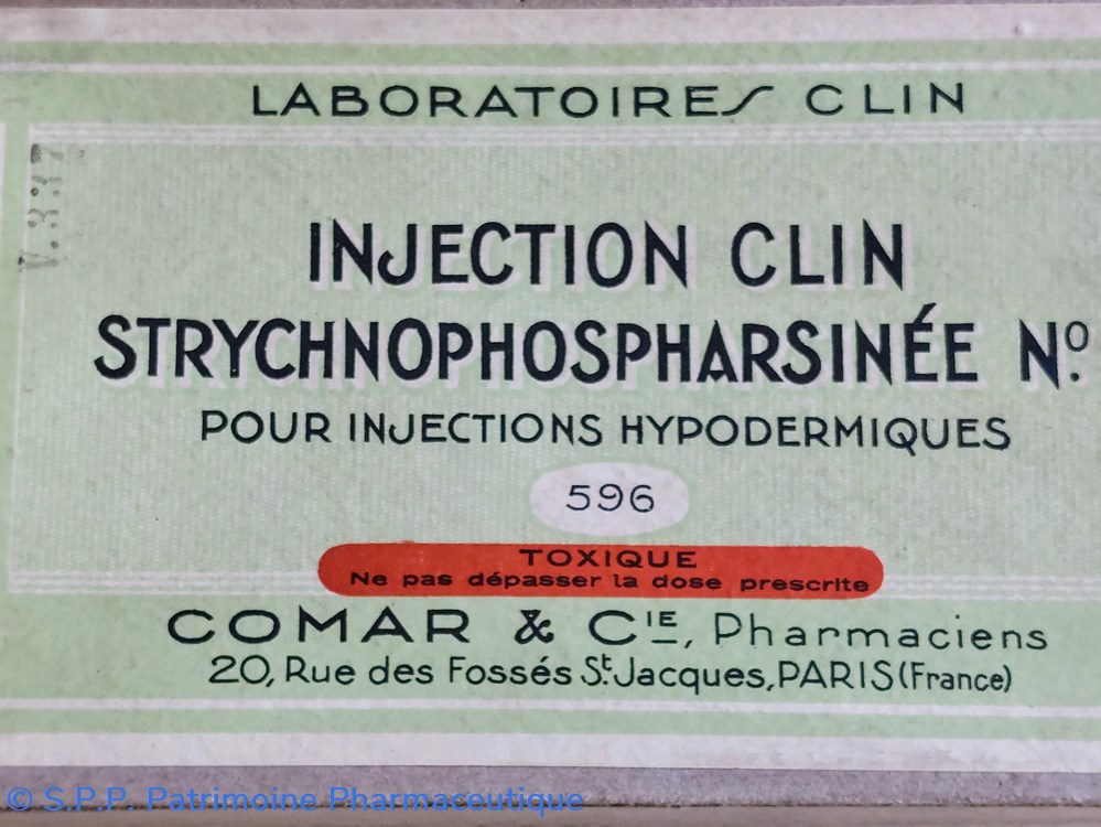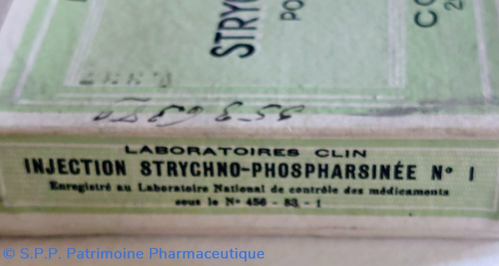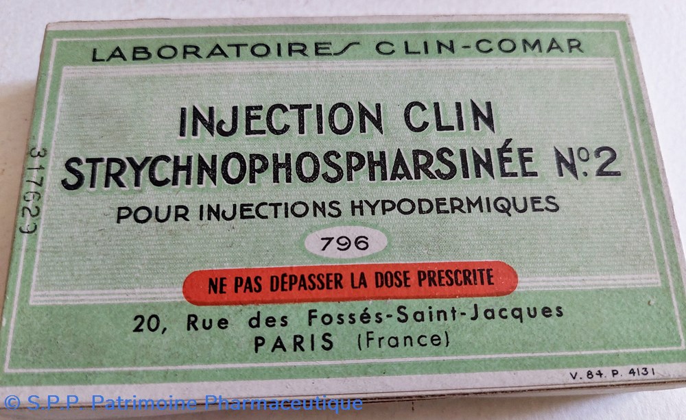 Coffret en carton scellé d'origine contenant des injections CLIN STRYCHNOPHOSPHARSINÉE N 1 Pour injections hypodermiques "596"