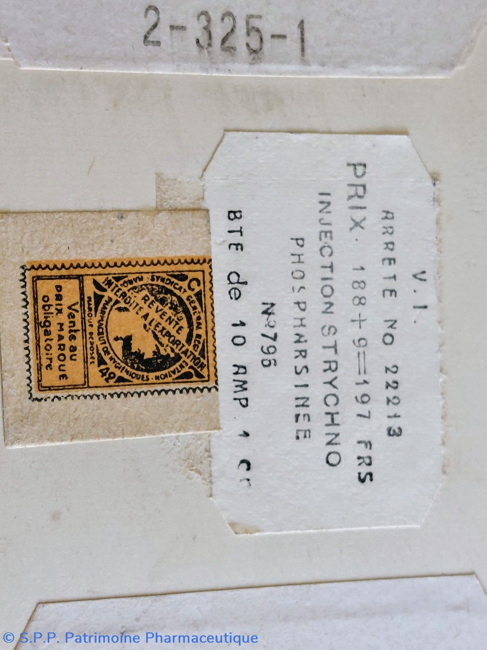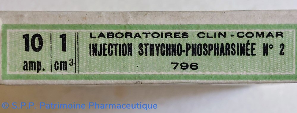 Coffret en carton scellé d'origine contenant 10 ampoules pour injections CLIN STRYCHNOPHOSPHARSINÉE N 2 Pour injections hypodermiques "796"