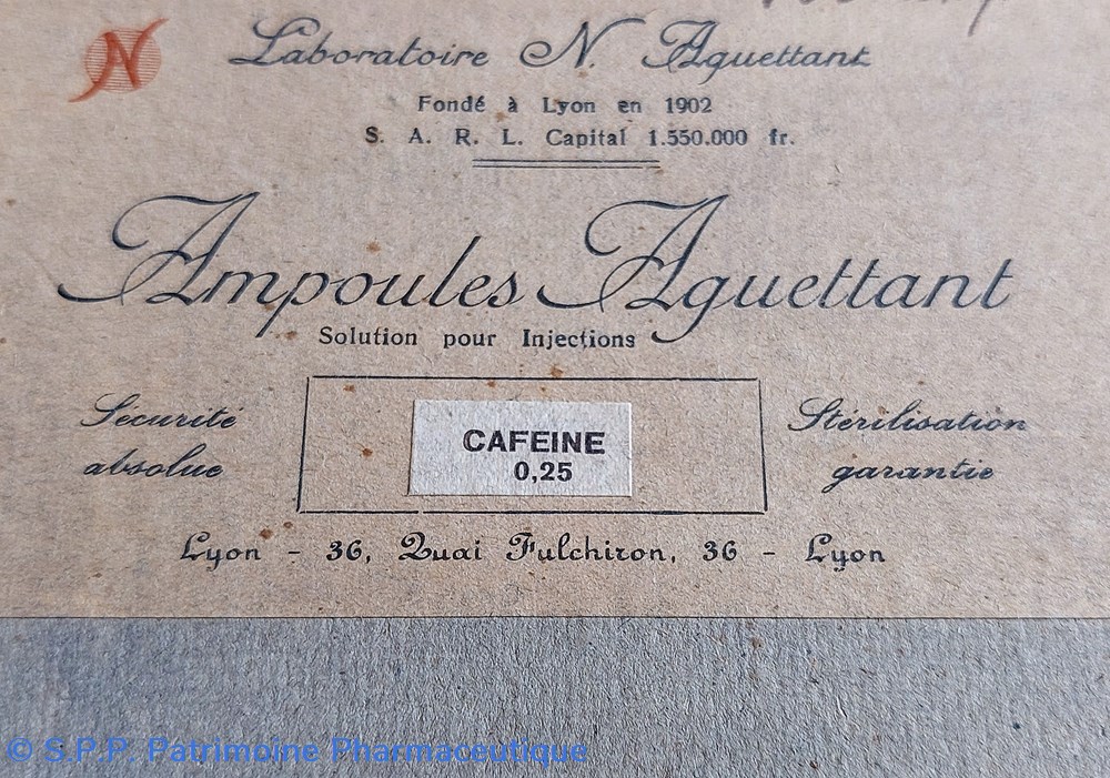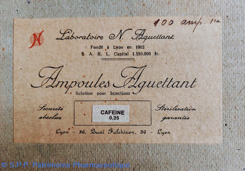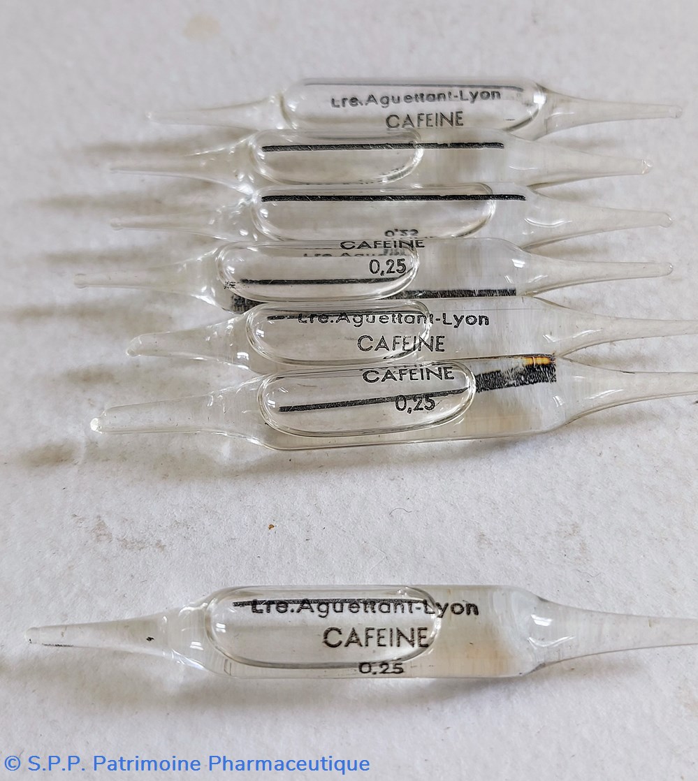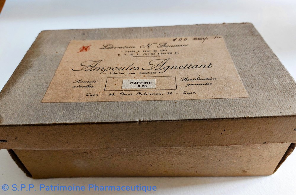 Grande Boîte carton (16*10*5.5 cm) de 100 AMPOULES AGUETTANT de CAFÉINE à 0.25