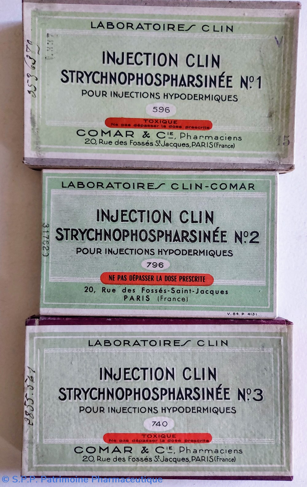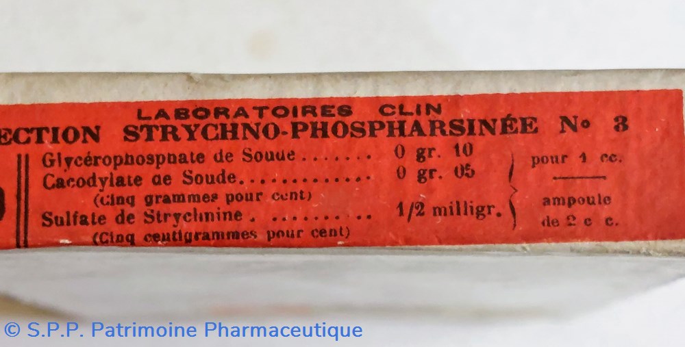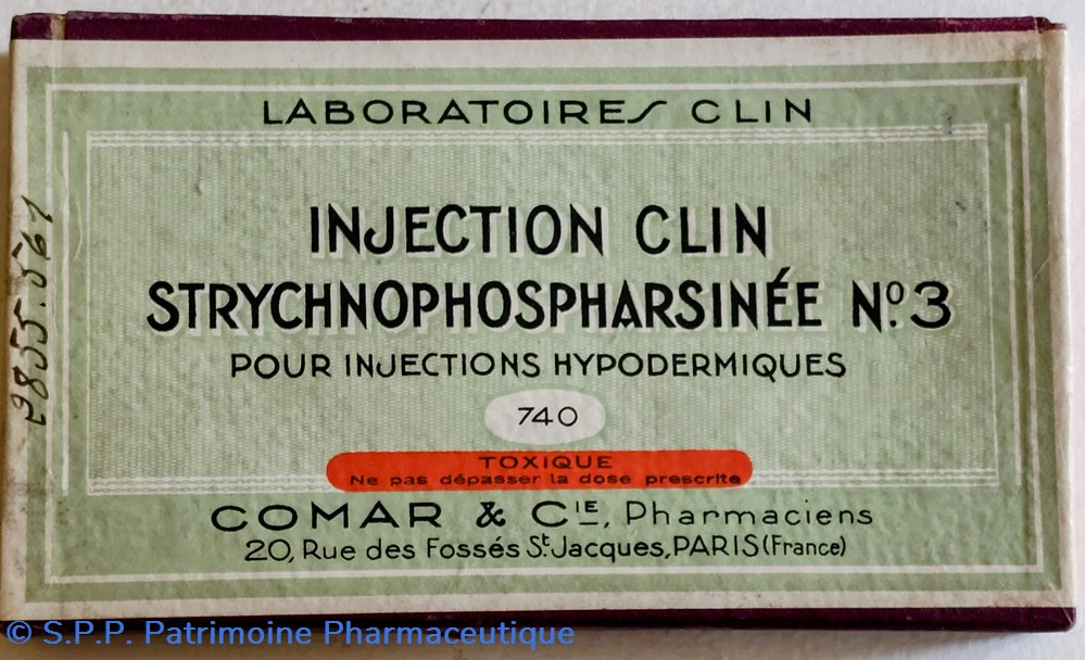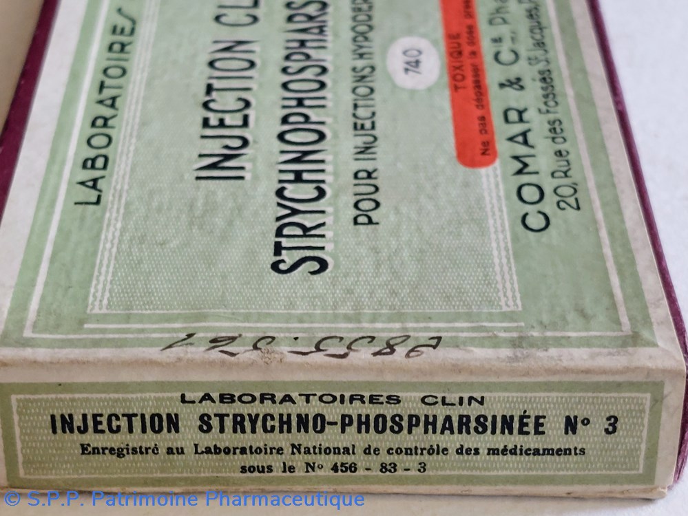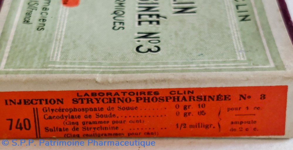 Coffret en carton scellé d'origine contenant des injections CLIN STRYCHNOPHOSPHARSINÉE N 3 Pour injections hypodermiques "740"