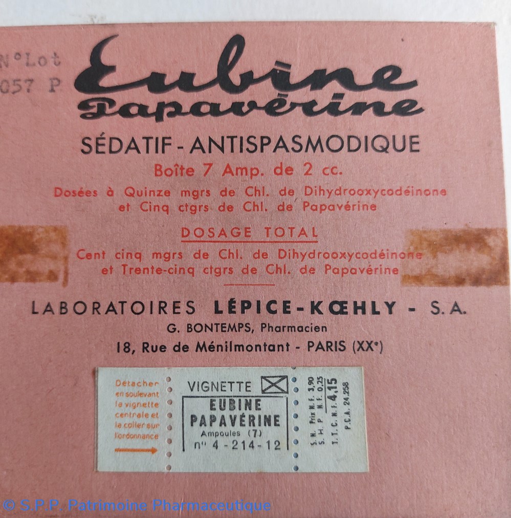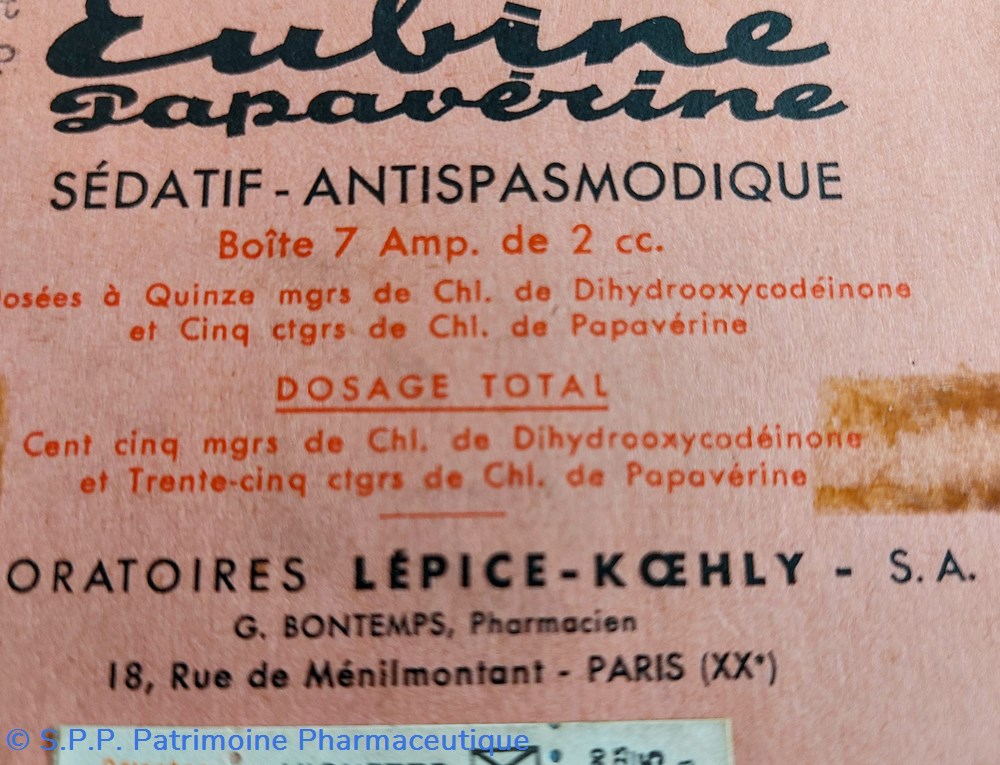 Dosées à 15 mgrs de Dihydrooxycodeinone et 5 ctgrs de Papavérine.