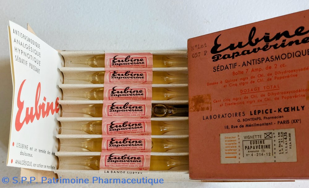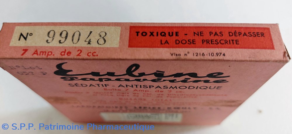 Coffret contenant 7 ampoules de 2 cc de sédatif Antipasmodique EUBINE PAPAVÉRINE.