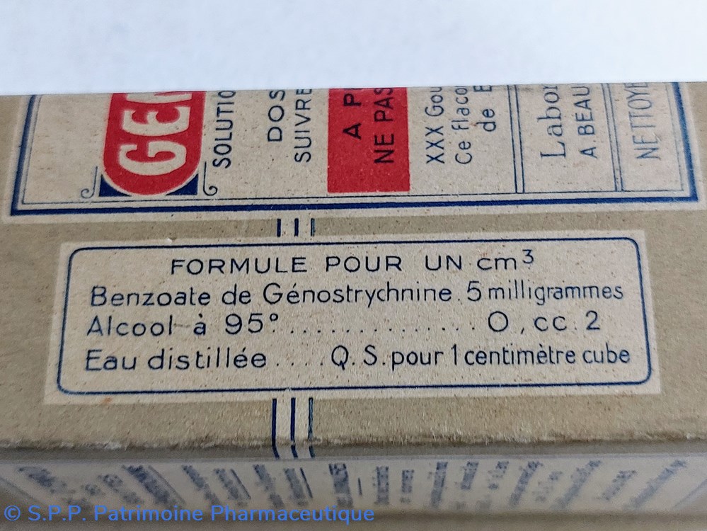 Formule amino Benzoate de Genostrychnine, Alcool à 95 % et Eau distillée. Pour Adultes et enfants