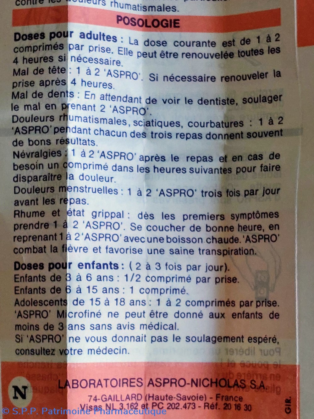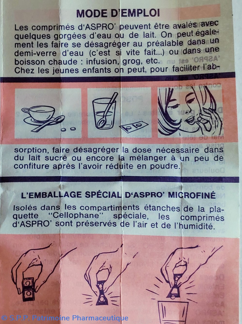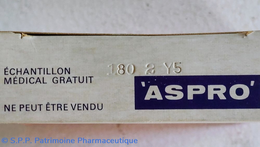 Boîte contenant des comprimés ASPRO Microfiné (7*5.3 *2 cm) conditionnements individuels.