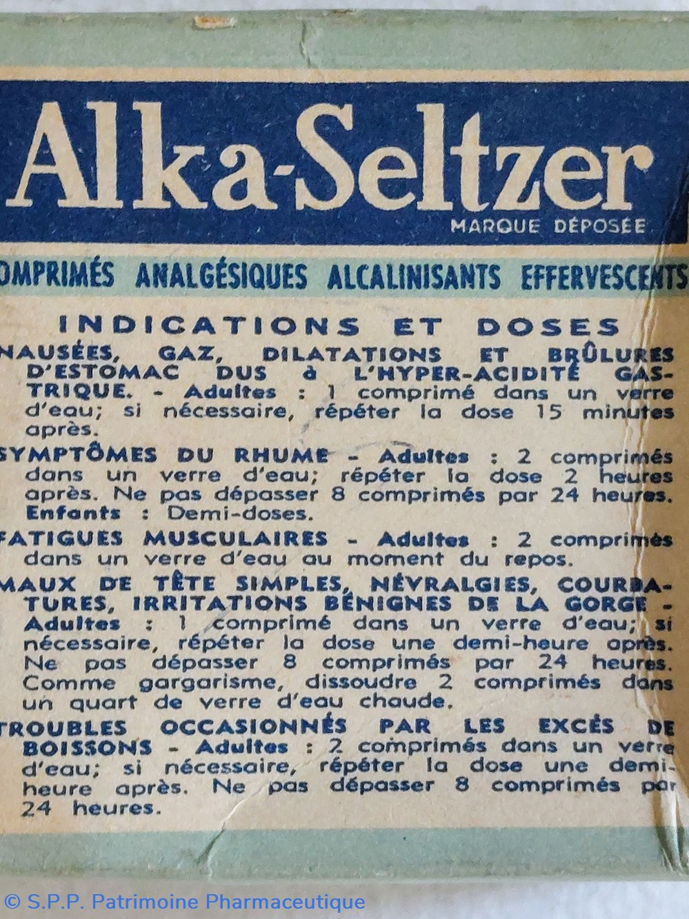 Boîte carton ayant contenu sous emballage unitaire des comprimés analgésiques alcalinisants effervescents.