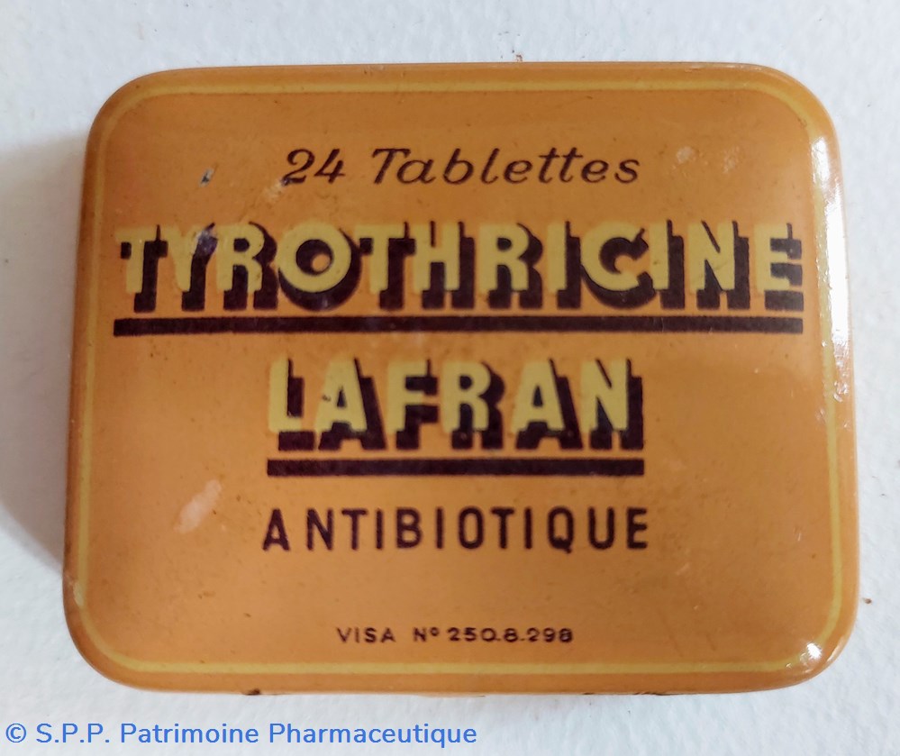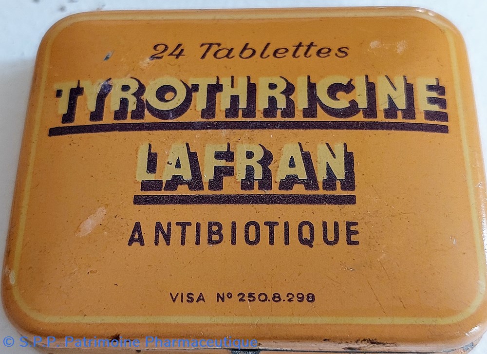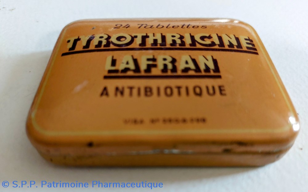 Boîte métallique vide 6.5 *5 *1 cm vide ayant contenu 24 tablettes de TYROTHRICINE LAFRAN Antibiotique.