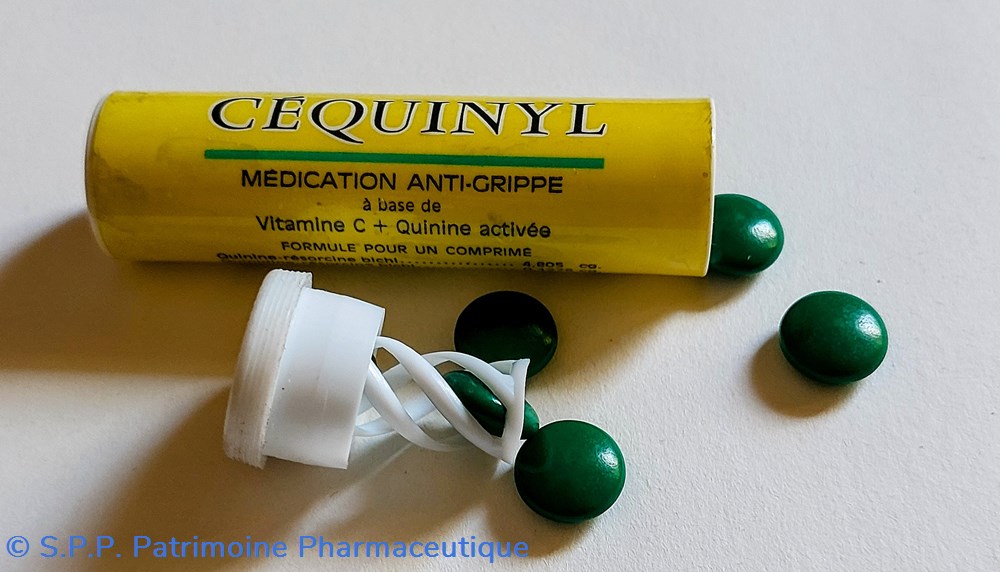 Tube de Médication Anti - grippe à la maison à la maison base de Vitamine C et Quinine activée. CÉQUINYL. Hauteur 6.8 Cm Diamètre 2 cm.