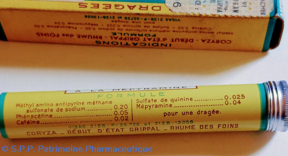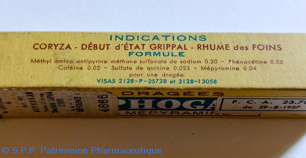 Formule amino antipyrine méthane sulfonate de Sodium Phénacétine Caféine Sulfate de quinine Mepyramine