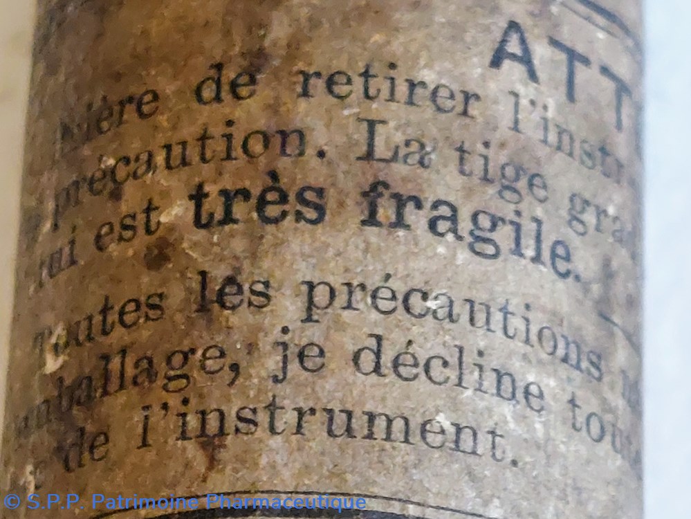 Protection d'un tube en carton avec un avertissement sur la fragilité de l'alcoometre.
