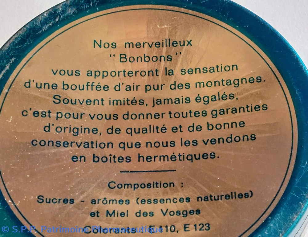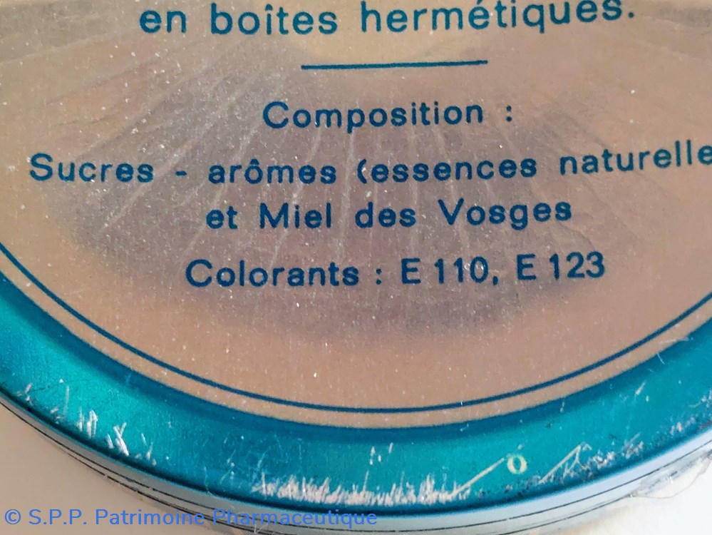 Composition : Sucre arômes ( essences naturelles)et Miel des Vosges - " Les Meilleurs bonbons à la sève de pin."