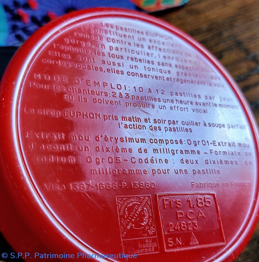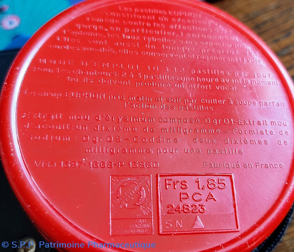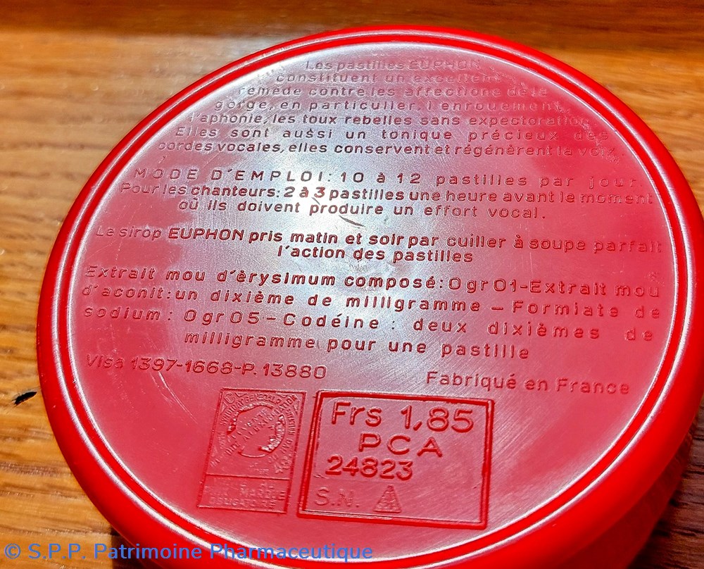 Boîte vide ayant contenu des PASTILLES EUPHON Remède contre les affections de la gorge... Enrouements aphonie Toux