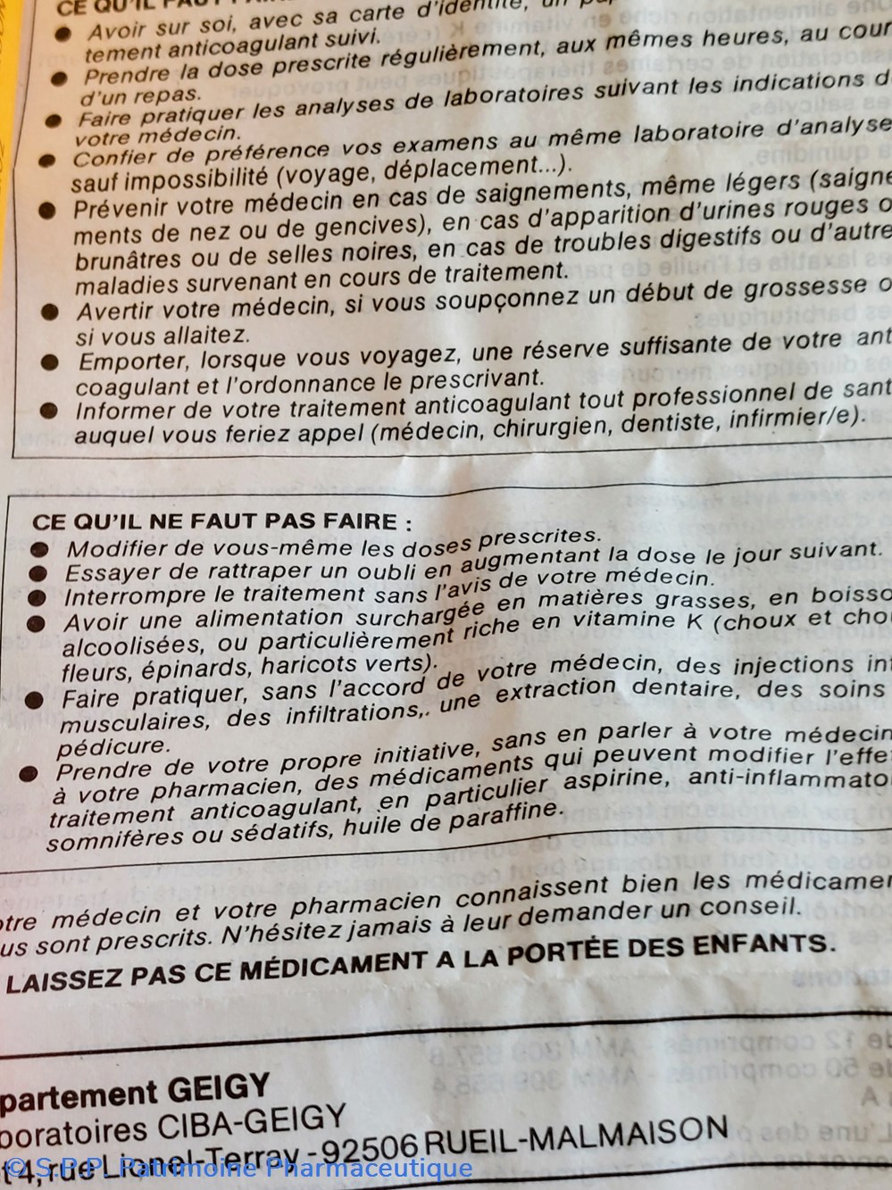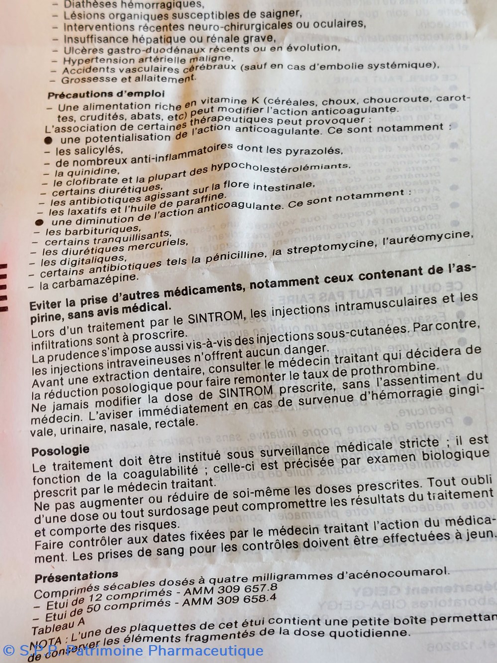 Traitement Anticoagulant contenant 4mg d'Acénocoumarol.
