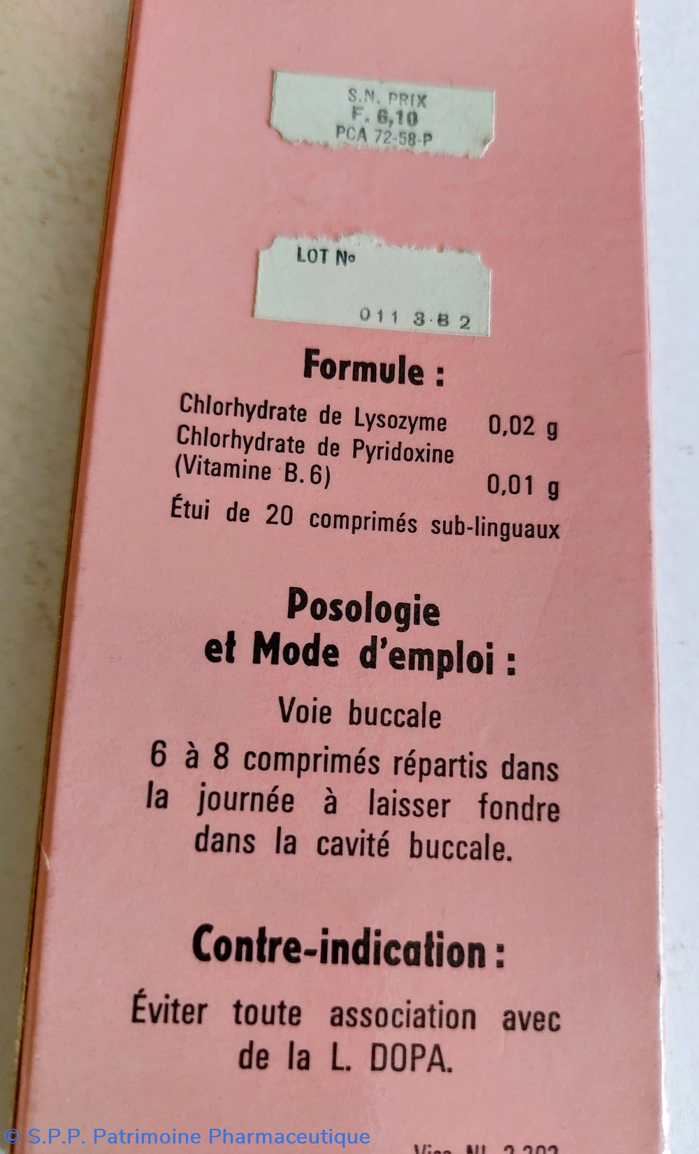 Formule Chlorhydrate de Lysozyme, Chlorhydrate de Pyridoxine