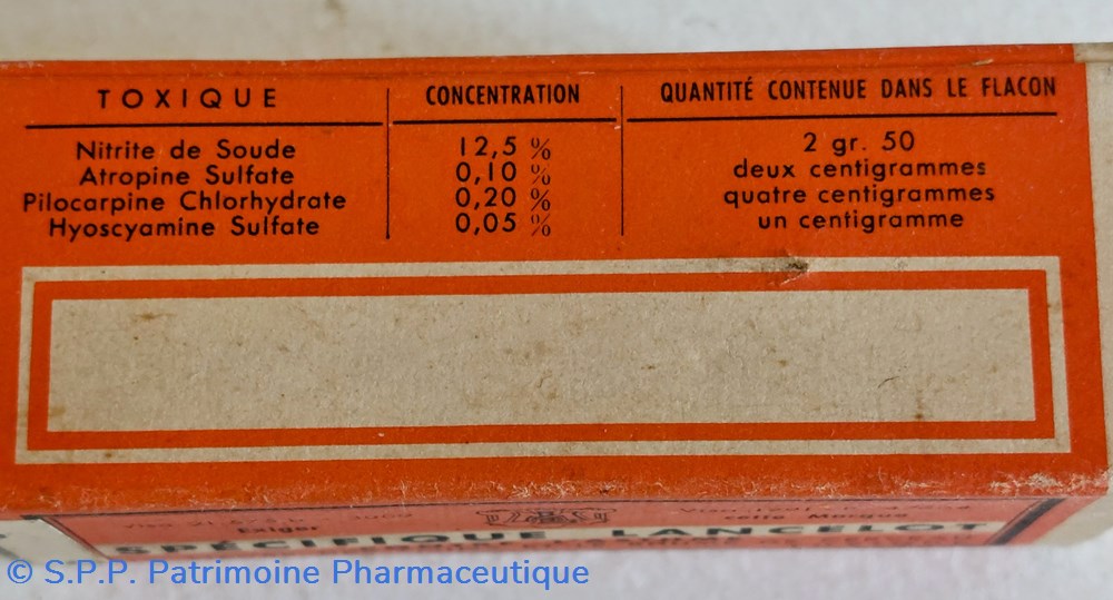 Formule : Nitrite de soude , Atropine sulfate, Pilocarpine Chlorhydrate, Hyoscyamine Sulfate.