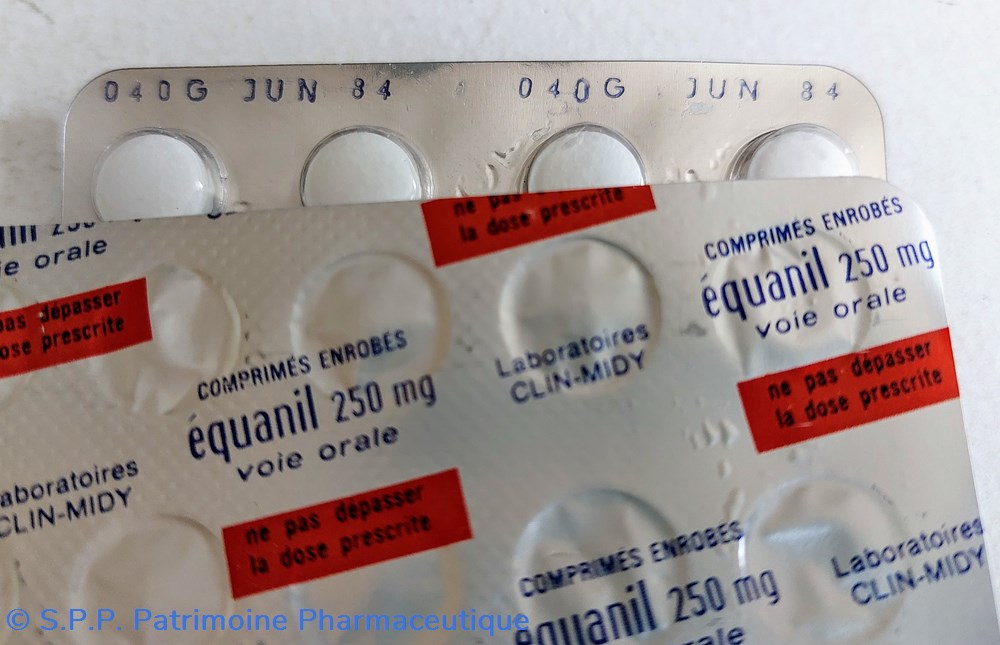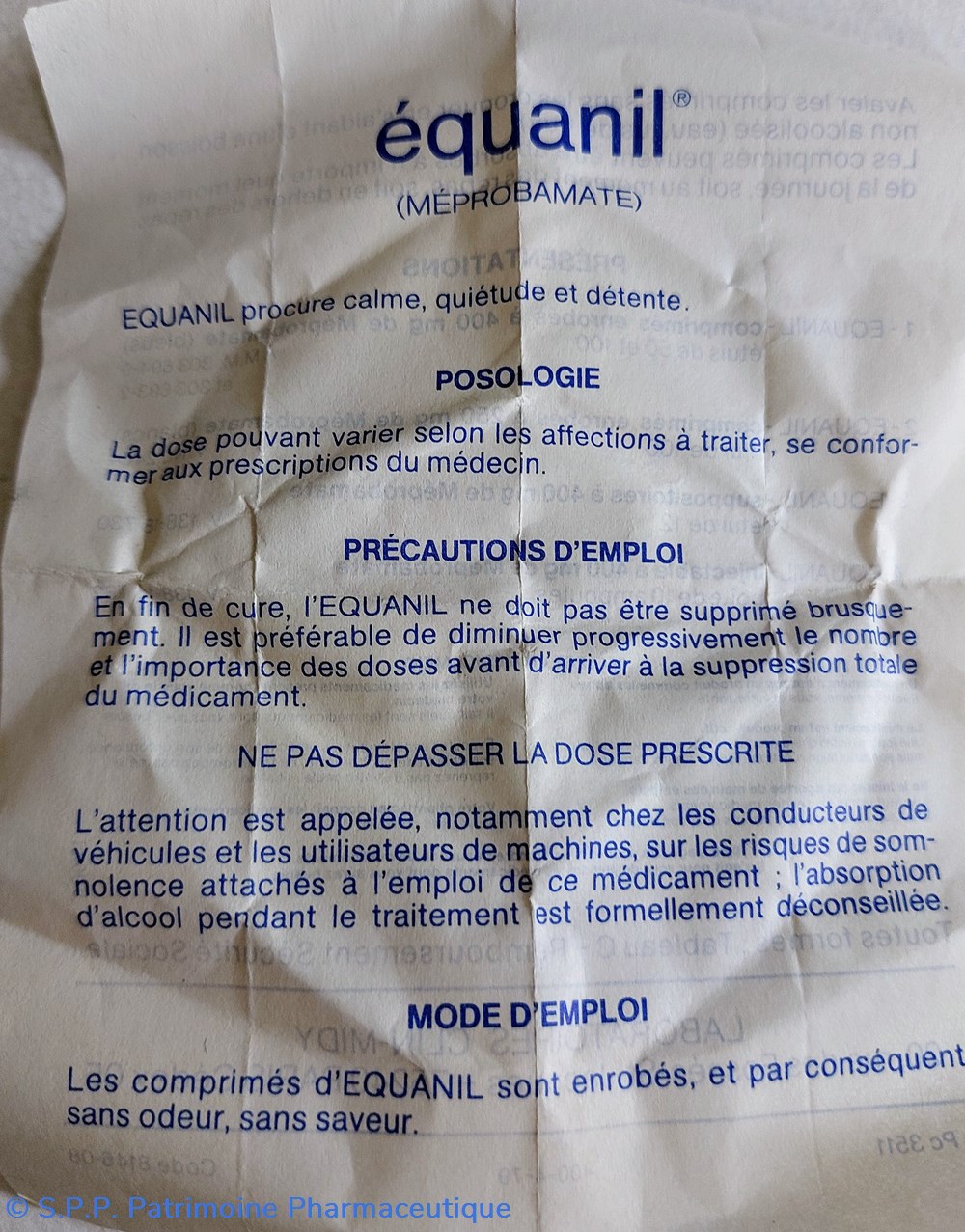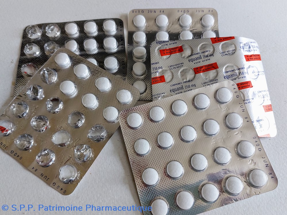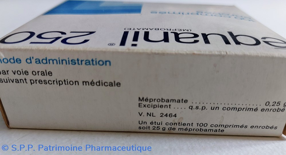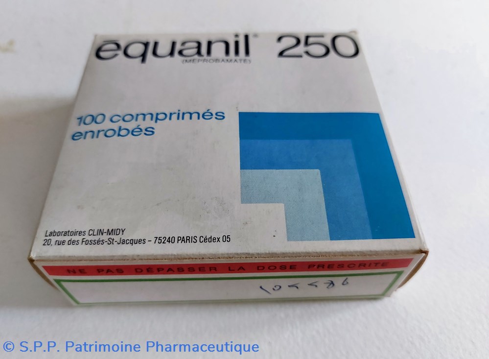 Boîte carton 9*8* 3 cm ayant contenu 100 comprimés enrobés EQUANIL 250.