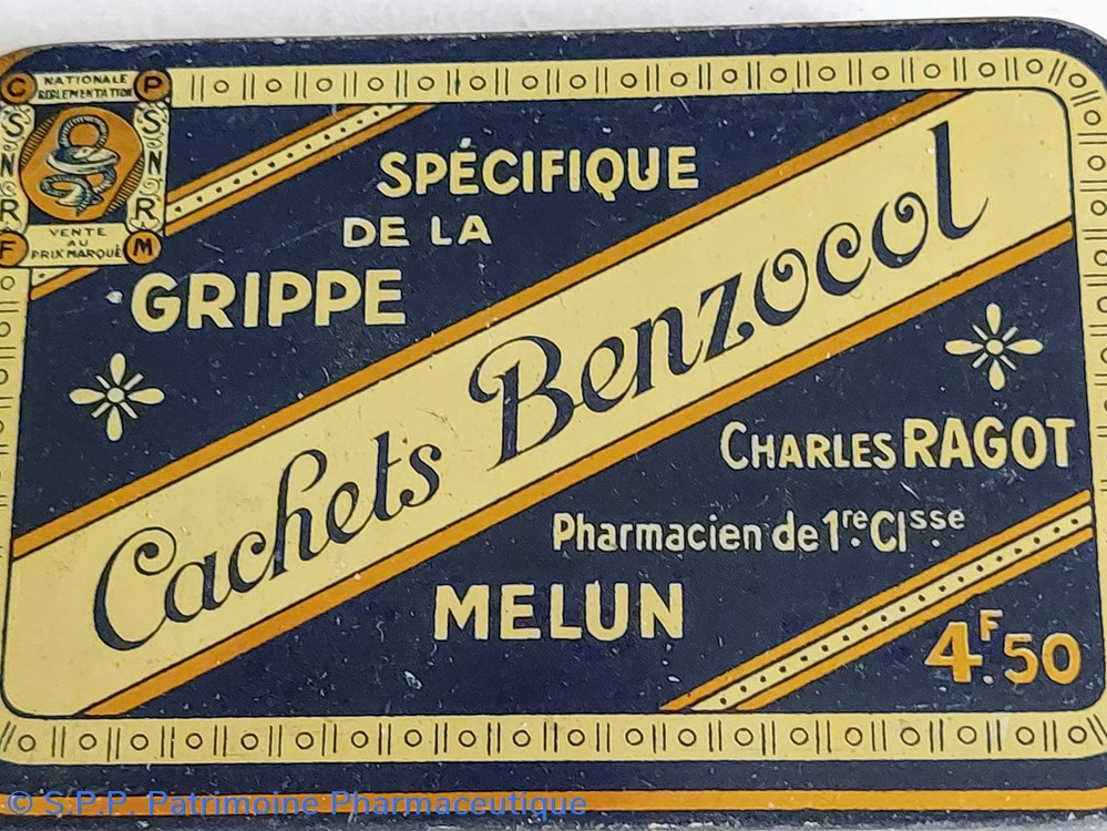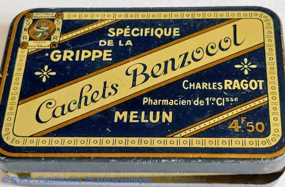Boîte métallique vide bon état 8,5*6* 1,2 cm ayant contenu des CACHETS BENZOCOL.